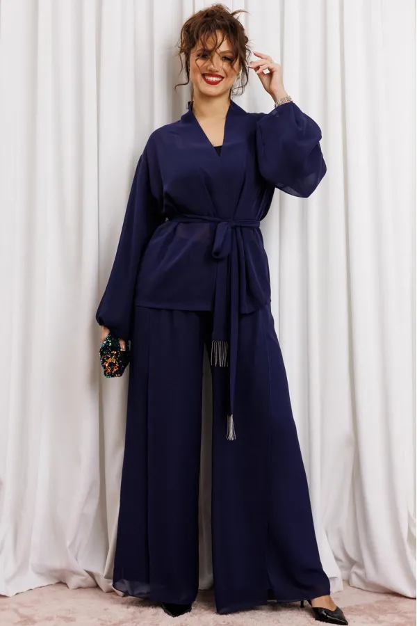 Элегантный вечерний костюм-двойка из шифона, состоящий из блузки свободного кроя и широких брюк. Красивый и эффектный брючный костюм - это идеальный образ для особых случаев, вечерних выходов, праздничных и торжественных... Читать далее...