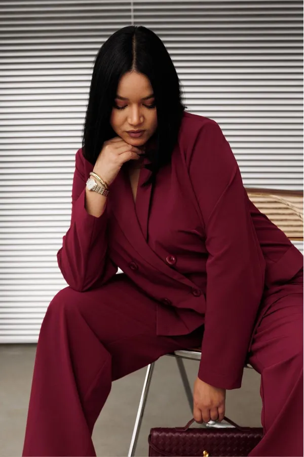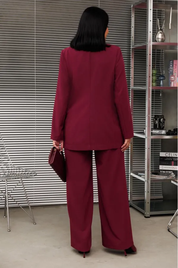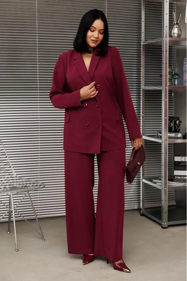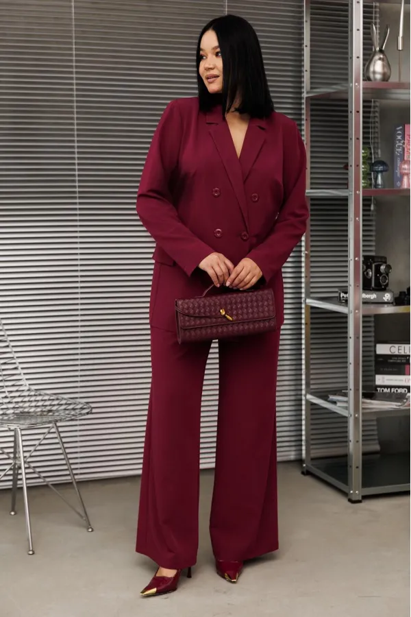 Женский брючный костюм — это идеальное сочетание стиля, комфорта и универсальности, которое станет вашим верным спутником как на деловых встречах, так и на торжественных мероприятиях. Изготовленный из высококачественной поливискозной ткани, этот костюм обеспечивает легкость и приятные ощущения при носке, а его элегантный пиджак и классические брюки подчеркивают вашу женственность и утонченность. Костюм женский 2-х предметный: жакет и брюки. Жакет полуприлегающего силуэта: бочок с выточкой по полочеке, по спинке средний шов. Застежка двухбортная, карман клапан обманка. Рукав двухшовный. Брюки прямые. По полочке карман и складки. Пояс на резинке. Строгий и модный фасон делает его актуальным в любой ситуации, будь то офис, свадьба или прадничный выход. Длина жакета: 73см . Длина рукава: 62см. Длина брюк: 100 см.