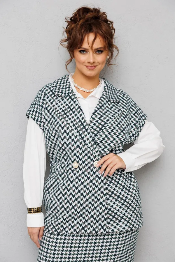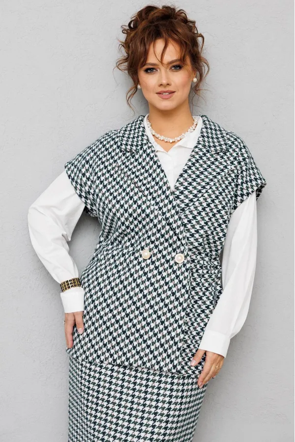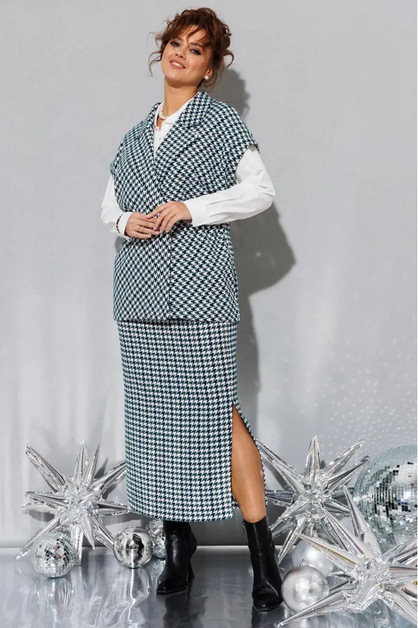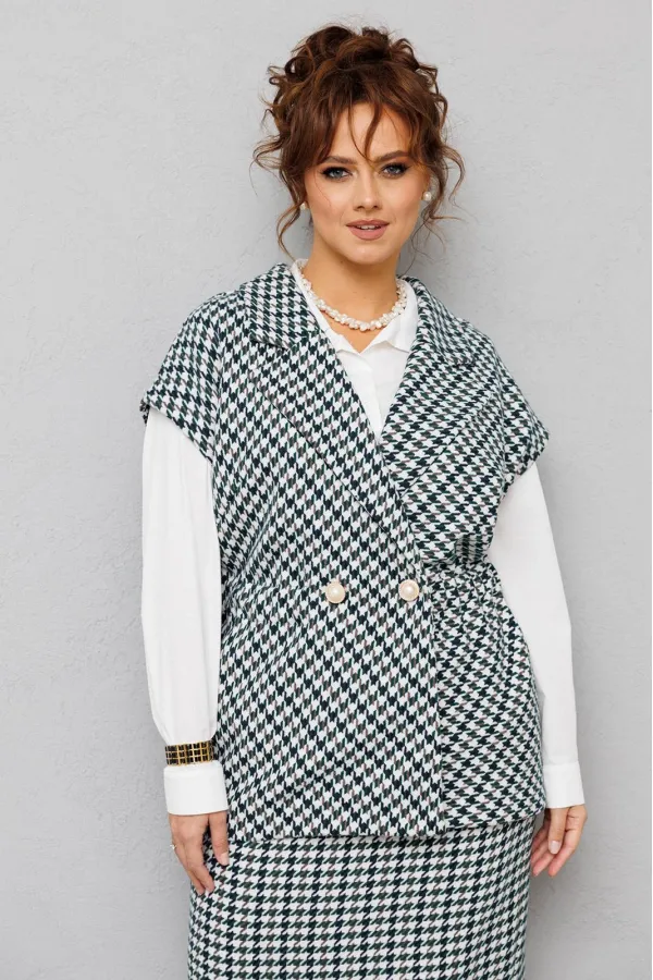 Бренд белорусской женской одежды больших размеров Anastasia представляет костюм двойку. Костюм женский 2-х предметный (жилет, юбка) из костюмной ткани (принт гусиная лапка) станет отличным дополнением к Вашему гардеробу.... Читать далее...