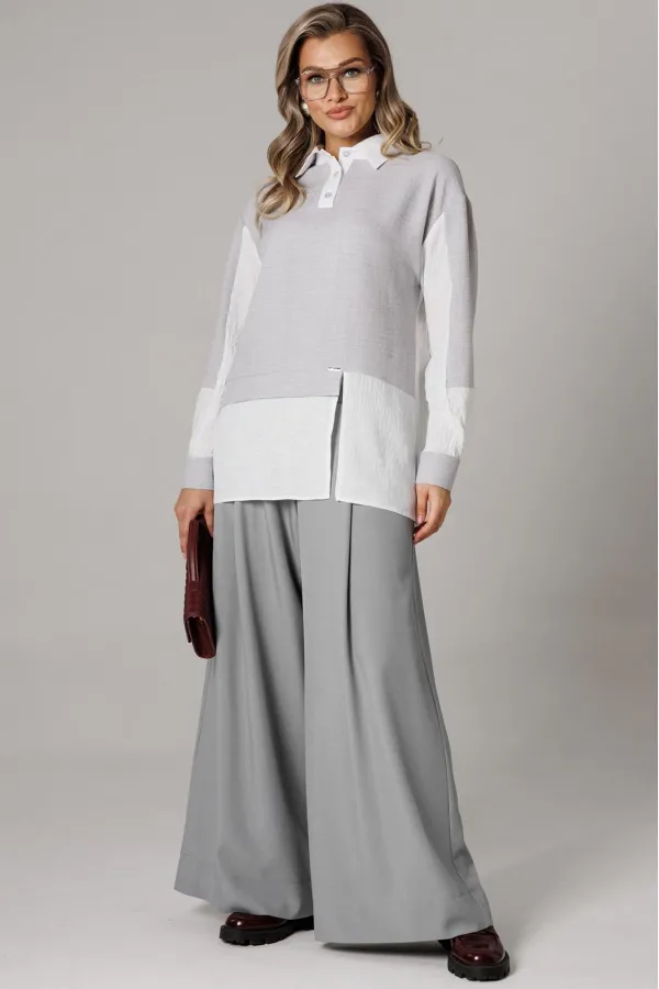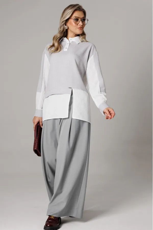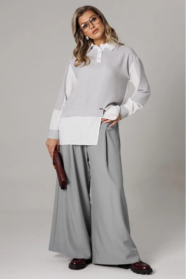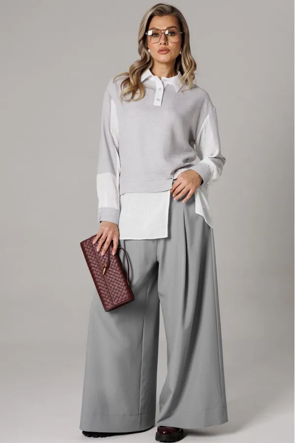 Комплект из костюмной ткани создан для тех, кто ценит комфорт и элегантность в каждой детали. В комплект входит блузка и штаны палаццо. Оверсайз крой придаёт костюму особый шарм и дает свободу движений. Высокая посадка и... Читать далее...