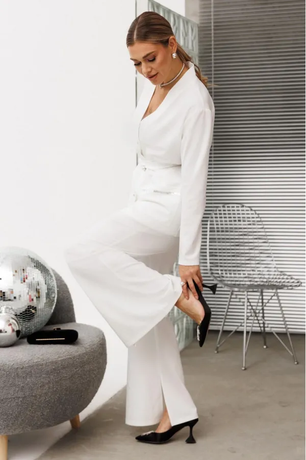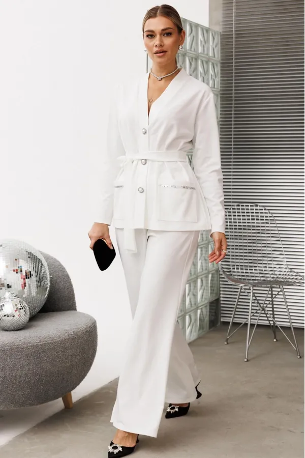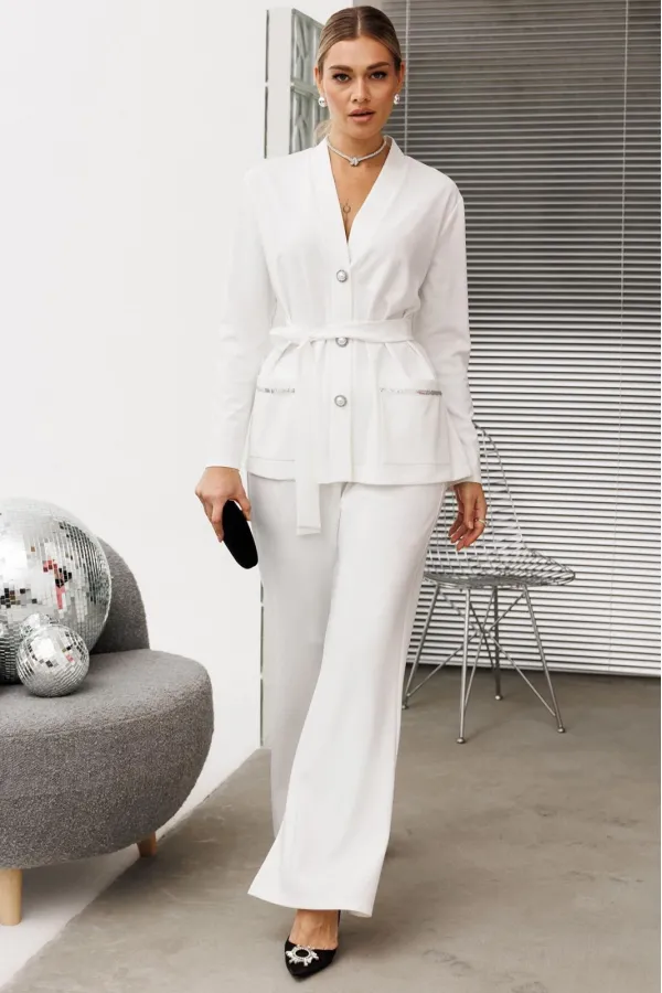 Шикарный трикотажный женский костюм от бренда Anastasia, идеальный для любого случая. Этот костюм сочетает в себе элегантность и комфорт, что делает его подходящим как для деловых встреч или торжествееных мероприятий, корпоративов. Комплект состоит из кардигана и брюк. Кардиган прямого силуэта. Застежка- планка с пуговицами. По полочке идут накладные карманы. Рукав втачной, одношовный. Подчеркнуть талию можно съемным поясом. В качестве декора- отделка на карманах, перекликающаяся с золотыми пуговицами. Брюки -клеш, пояс на резинке. По внутреннему срезу по низу идут разрезы. Отдельный части костюма легко будут сочетаться с вещами из Вашего гардероба. Костюм можно носить с туфлями, кроссовками или ботинками. Обязательно добавьте наш бренд в избранное и следите за новинками, распродажами, скидками и акциями! Хороших покупок от «Анастасия». Длина (по спинке):(50-54)- 69см, (56-60)-72 см. Длина рукава: (50-60)- 60см. Длина брюк: (50-54):- 104см, (56-60)- 106см.