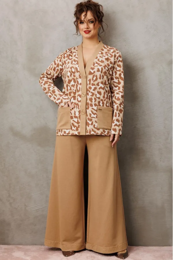 Шикарный трикотажный женский комплект от бренда Anastasia, идеальный для любого случая. Этот комплект сочетает в себе элегантность и комфорт, что делает его подходящим как для деловых встреч или прогулок. Комплект состоит из жакета и брюк. Жакет прямого силуэта. Застежка- планка с пуговицами. По полочке идут накладные карманы. Рукав втачной, одношовный. Подчеркнуть талию можно съемным поясом. В качестве декора- брендированная нашивка на кармане, перекликающаяся с золотыми пуговицами. Стильный комплект отлично подойдет для долгих прогулок или для работы, для офиса. Брюки, расширенные к низу, пояс на резинке, по бокам карманы. Отворот по низу на изнанку. Отдельный части костюма легко будут сочетаться с вещами из Вашего гардероба. Модель можно отнести к стилю кэжуал. Костюм можно носить с туфлями, кроссовками или ботинками. Обязательно добавьте наш бренд в избранное и следите за новинками, распродажами, скидками и акциями! Хороших покупок от «Анастасия». Длина (по спинке):(50-54)- 68см, (56-60)-71 см. Длина рукава: (50-60)- 60см. Длина брюк: (50-54):- 101см, (56-60)- 104см.