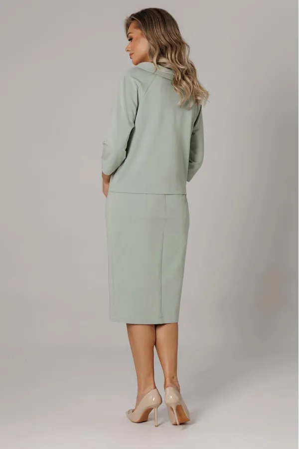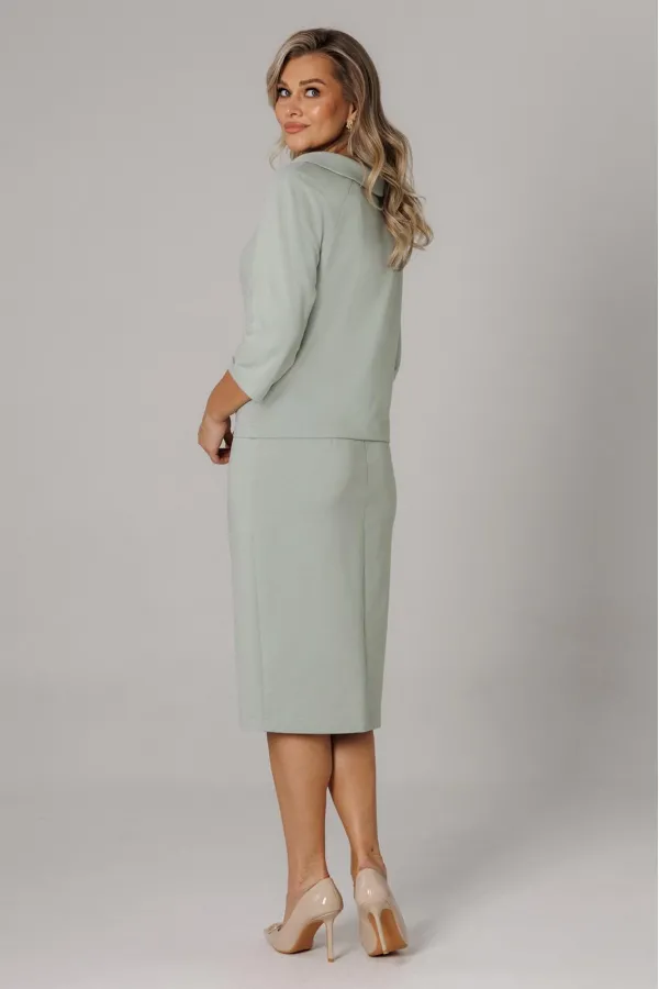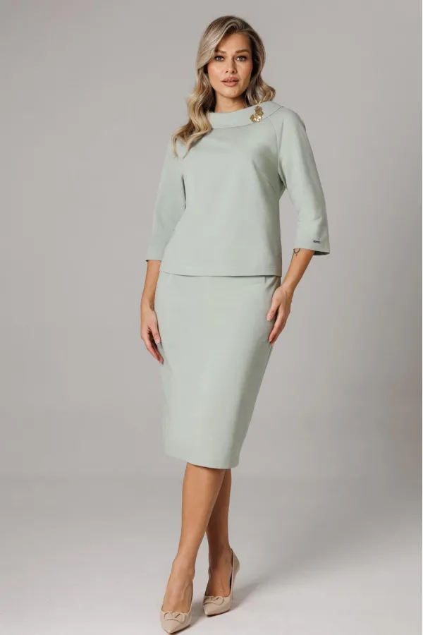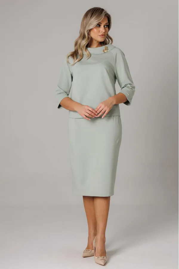 Женский костюм двойка из хлопкового трикотажного полотна станет базой вашего гардероба. Этот деловой комплект с блузкой плюс сайз станет отличным выбором для офисных работников и всех, кто ценит комфорт и стиль в одежде. Юбка без подкладки обеспечивает свободу движения, а длина (миди) делает ее универсальной для любого типа фигуры. Блузка без застежки с воротником шалевой формы - это не только функциональный, но и стильный женственный акцент в образе. Длина рукава в блузке plus size 3/4 делает костюм универсальным. В каччестве декора - брендированная нашивка на рукаве и брошь. Этот классический костюм создан для повседневной носки и будет радовать вас своей мягкостью и комфортом даже в самые холодные дни. Комплект шикарный и создан с учетом особенностей женской фигуры и идеально подойдет для обладательниц пышных форм, для высоких и невысоких. Он одинаково хорошо смотрится на стройных и плюс сайз, с большой и маленькой грудью. Благодаря своему строгому и элегантному дизайну, юбочный костюм станет незаменимым элементом вашего гардероба и поможет создать множество деловых и вечерних образов. Комплект без подклада, не на флисе, без начеса, ткань не просвечивает. Брошь в комплекте. Длина блузки-53см. Длина рукава (от горловины) - 55 см. Длина юбки-72 см.