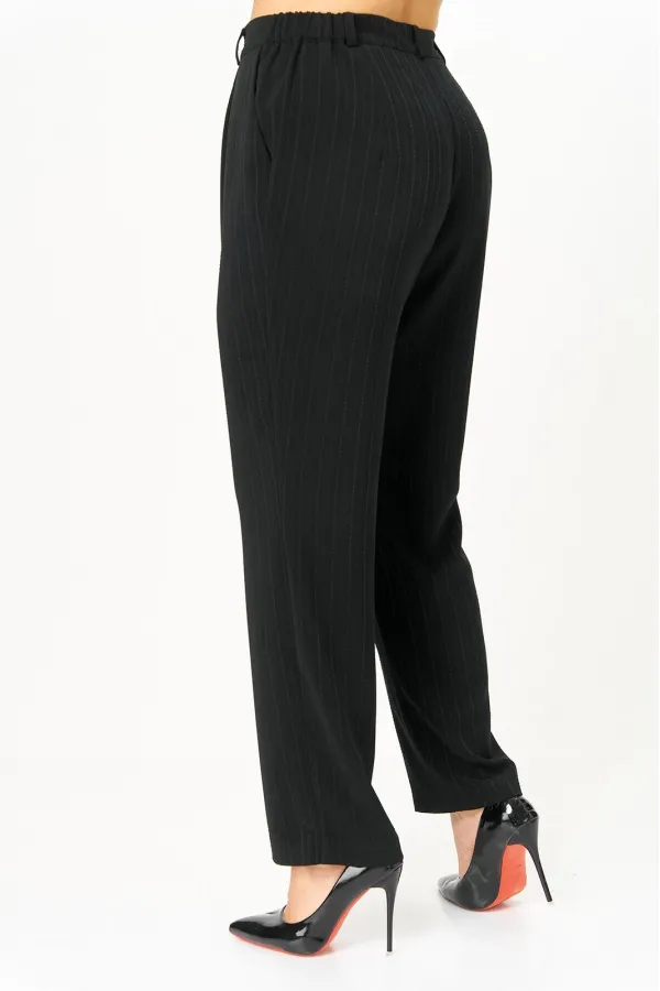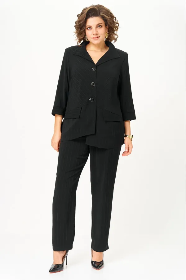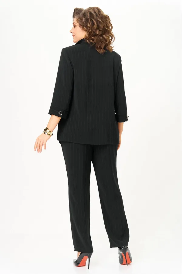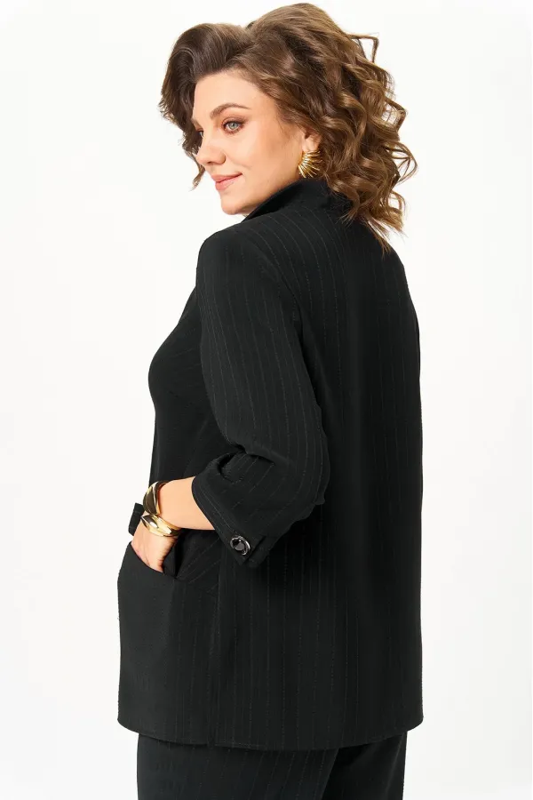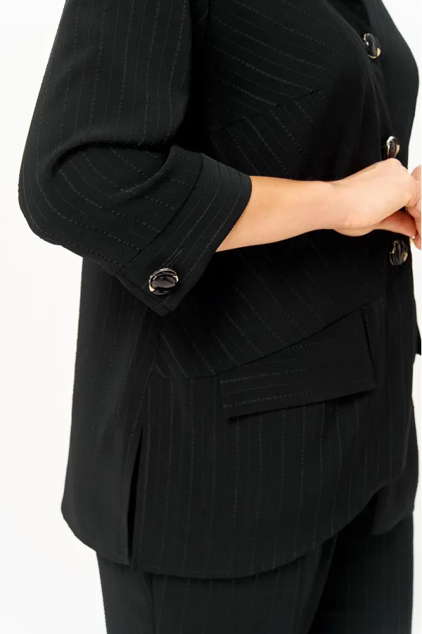 Костюм состоящий из жакета и брюк, выполнен из костюмной ткани в полоску.