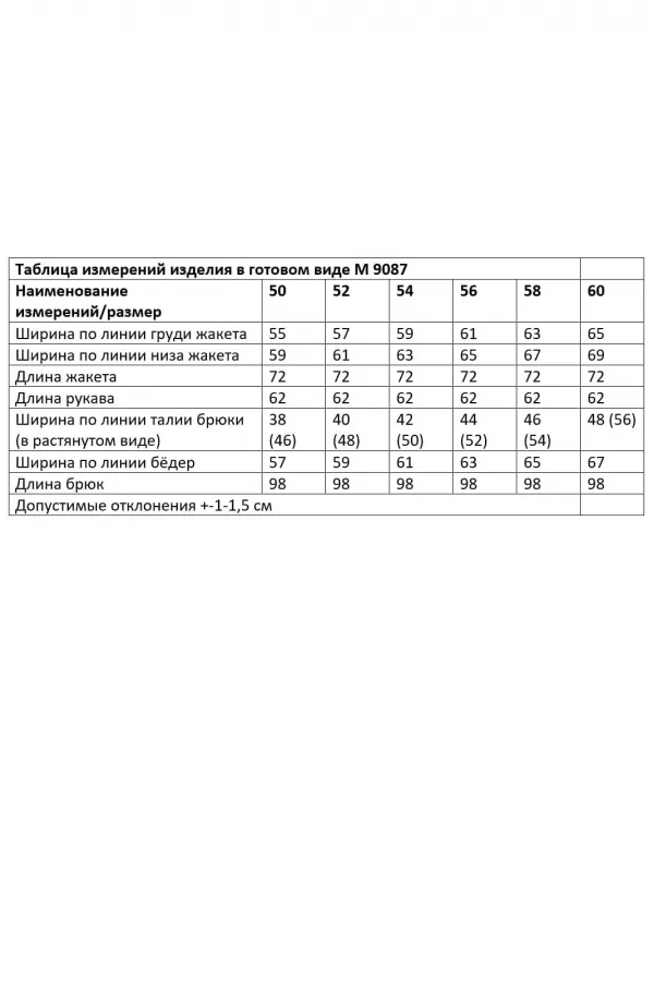 | Ткань | Состав жакет 94% полиэстер 6% спандекс Брюки 64% полиэстер 33% вискоза 3% эластан |