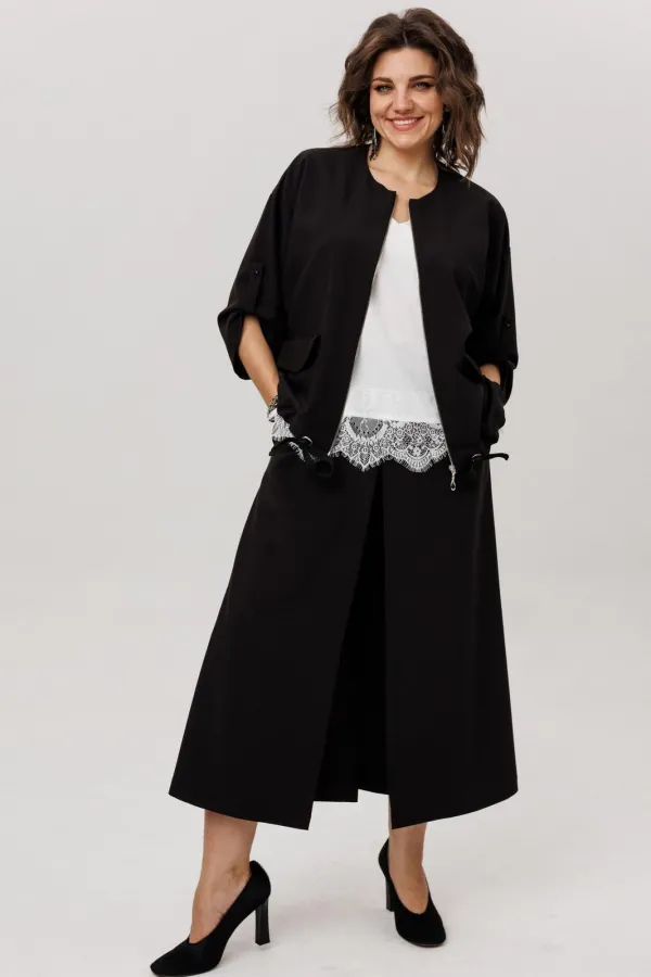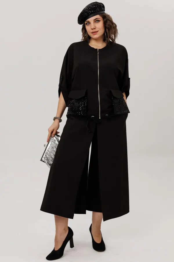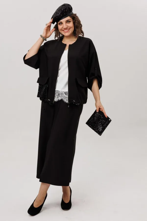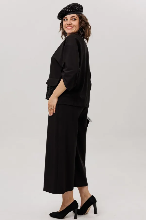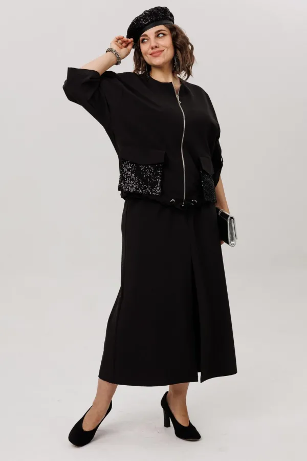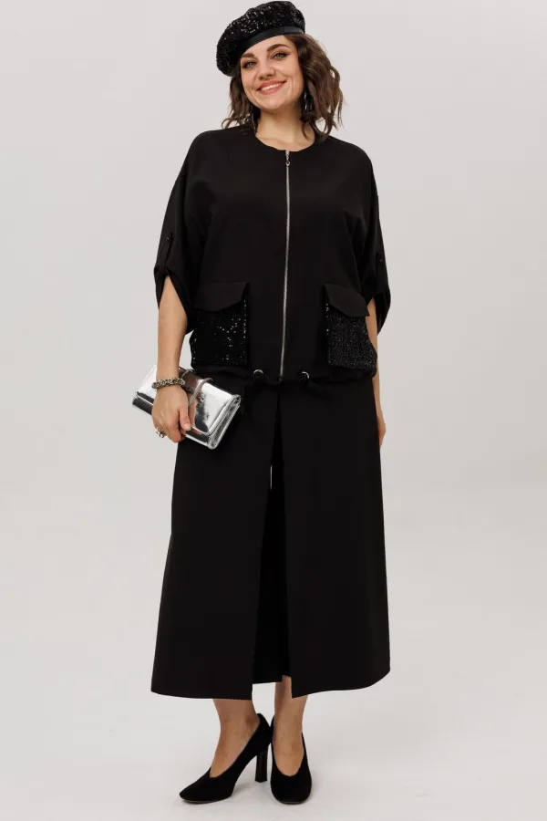Вместе они создают безупречный дуэт - синтез повседневной простоты и особого стиля. Этот ансамбль, где строгость линий смягчена мягкостью кроя, а практичность оживлена искрой блеска, станет идеальным спутником, легко преображаясь из деловой встречи в вечернее свидание. Это гармония, в которой вы чувствуете себя красивой, уверенной и абсолютно собой.