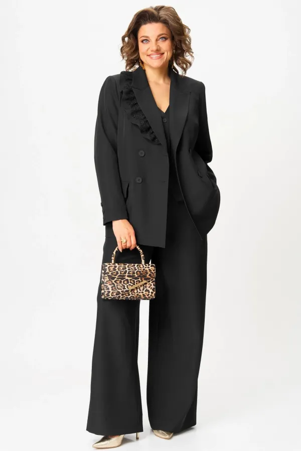 Модный брючный комплект-тройка с удлиненным жакетом станет отличным дополнением Вашего гардероба.