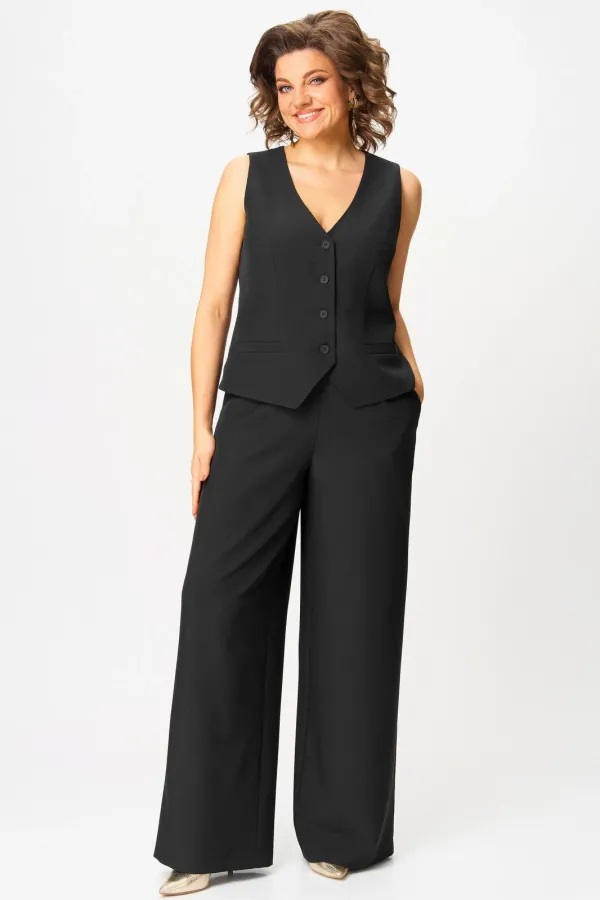 Модный брючный комплект-тройка с удлиненным жакетом станет отличным дополнением Вашего гардероба.Жакет прямого силуэта, на подкладке. По переду - центральная двубортная застежка на петли и пуговицы, нагрудные вытачки и ф... Читать далее...