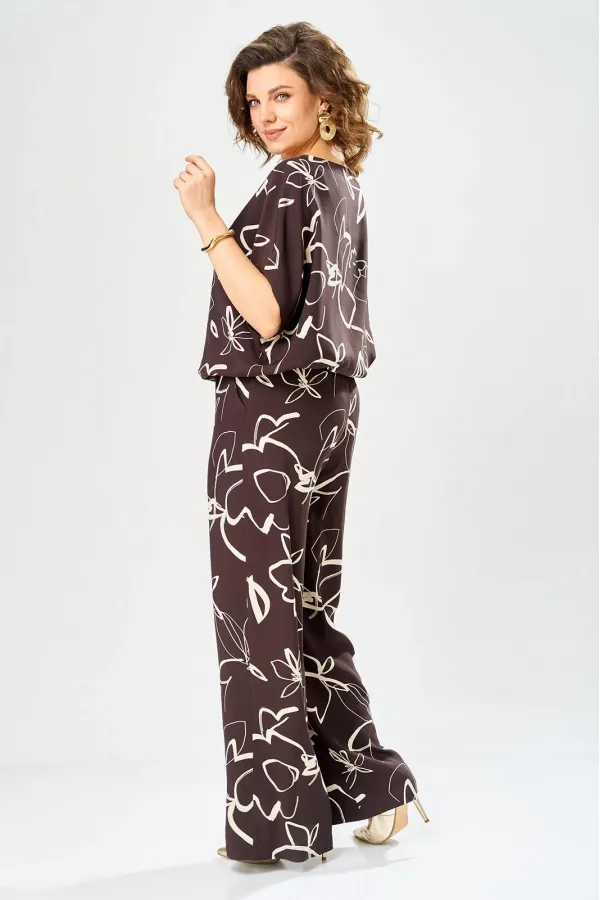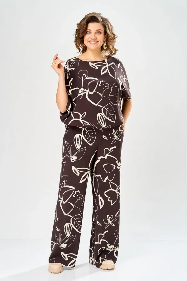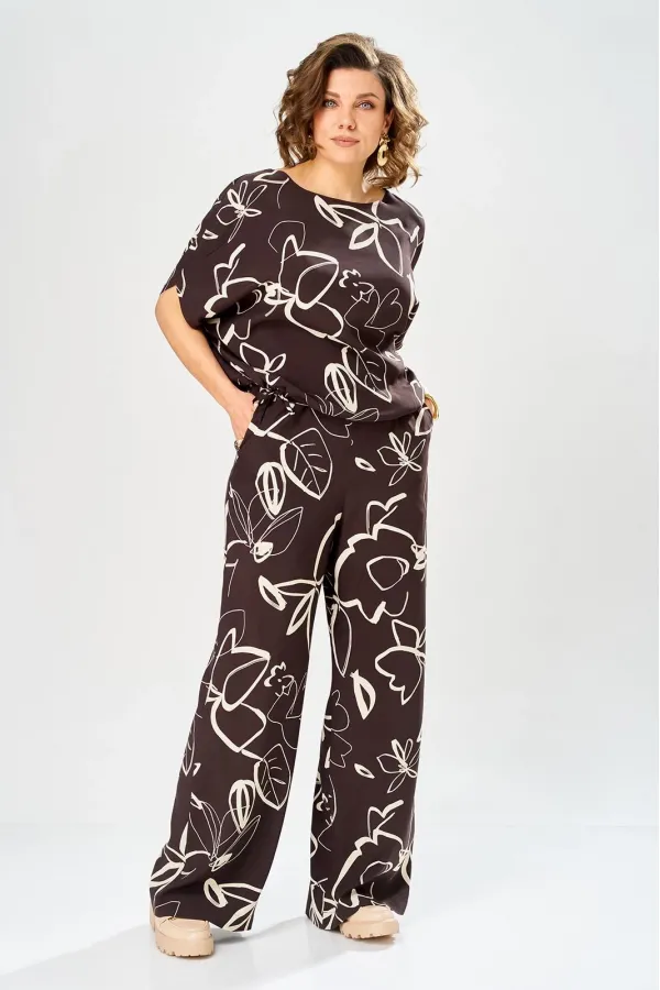 Стильный брючный комплект в трендовом цвете шоколад идеально впишется в Ваш весенне-летний гардероб. Костюм свободного кроя выполнен из высококачественной 100% вискозы. Удобные свободные брюки с поясом на резинке идеальн... Читать далее...