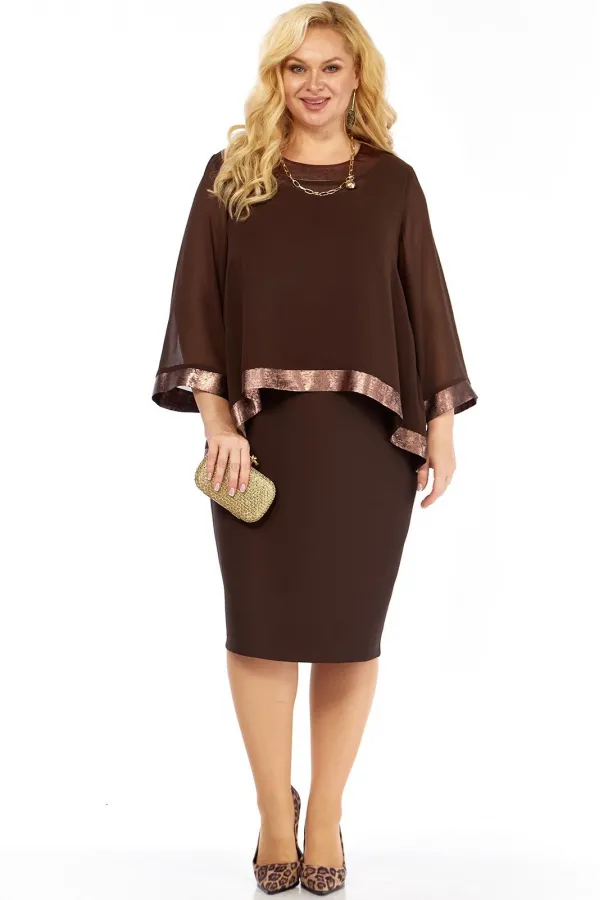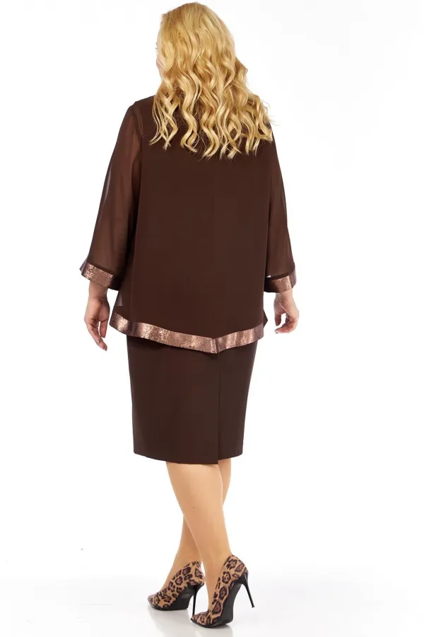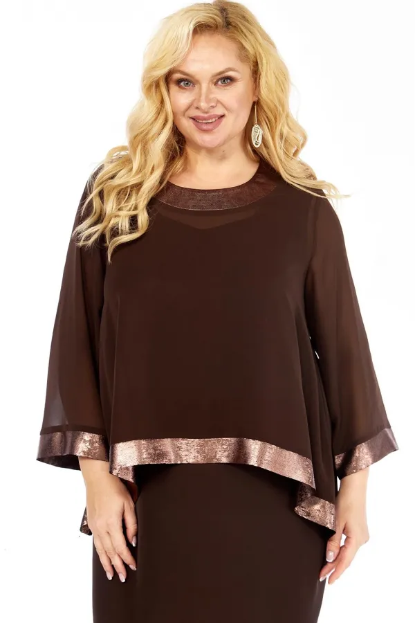 Нарядный женский двухпредметный комплект состоит из блузы ,выполненной из шифона двух видов,и платья,выполненного из однотонной плательно-костюмной ткани.