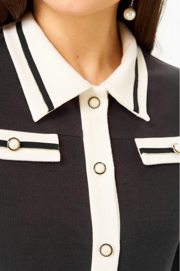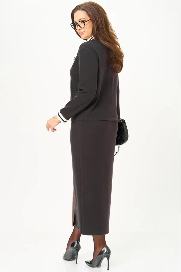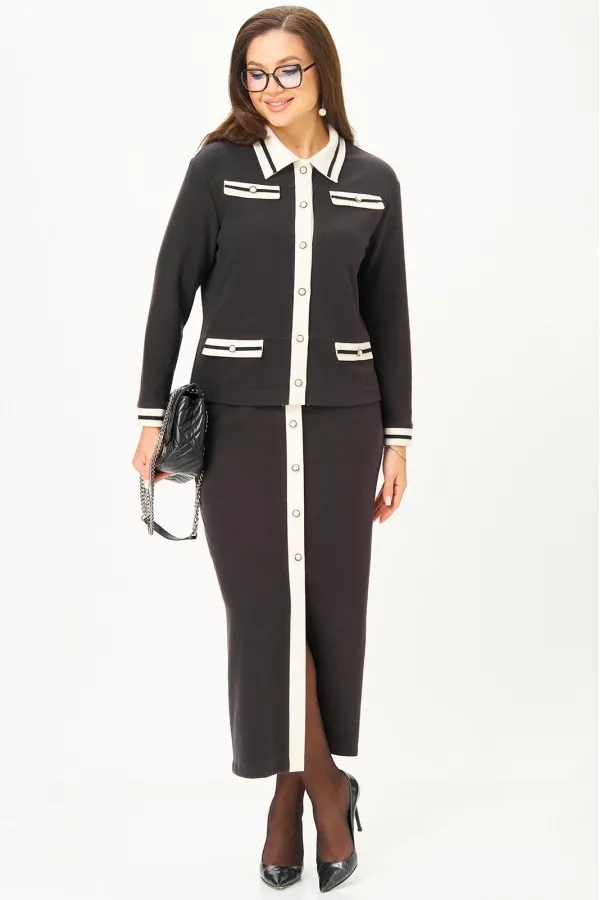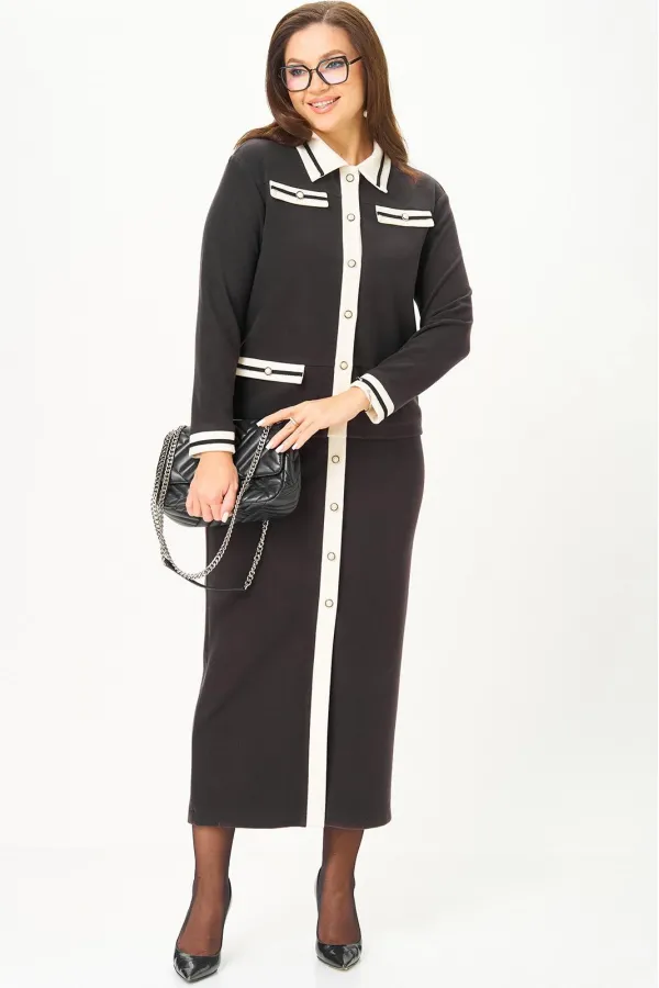 Клапаны,воротник,подборта, манжеты жакета и планка юбки ,выполнены из контрастного трикотажного полотна.
