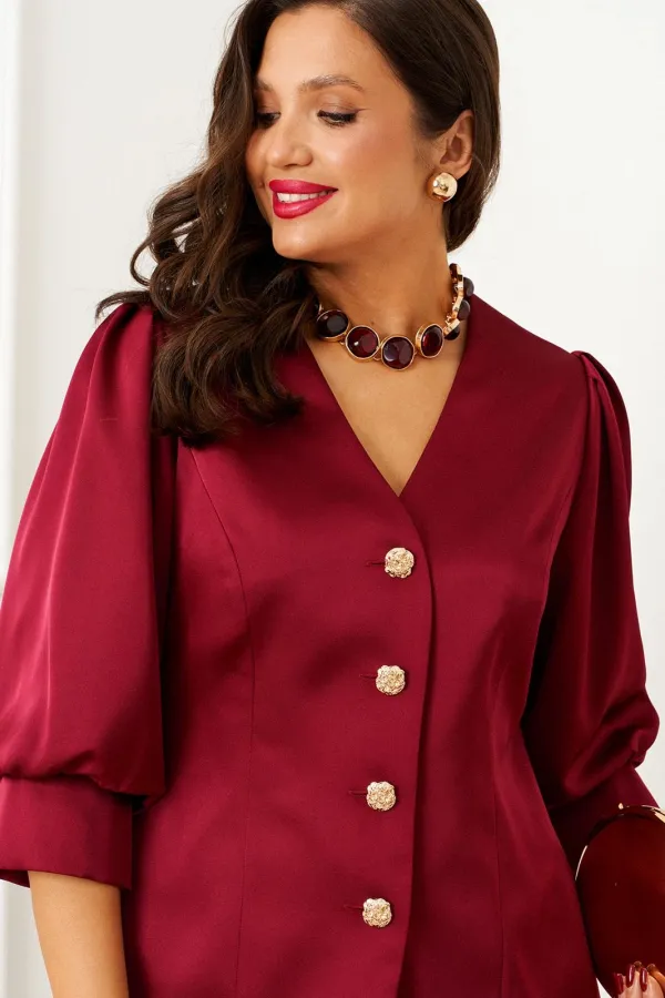 Рукав втачной одношовный длиной до локтя, фантазийный, пышный с заложенными глубокими складками по окату, на притачной манжете и сборкой от нее.