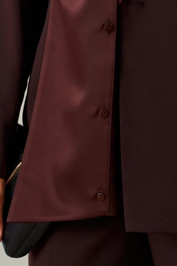 Застежка центральная однобортная на петлю и декоративную пуговицу.