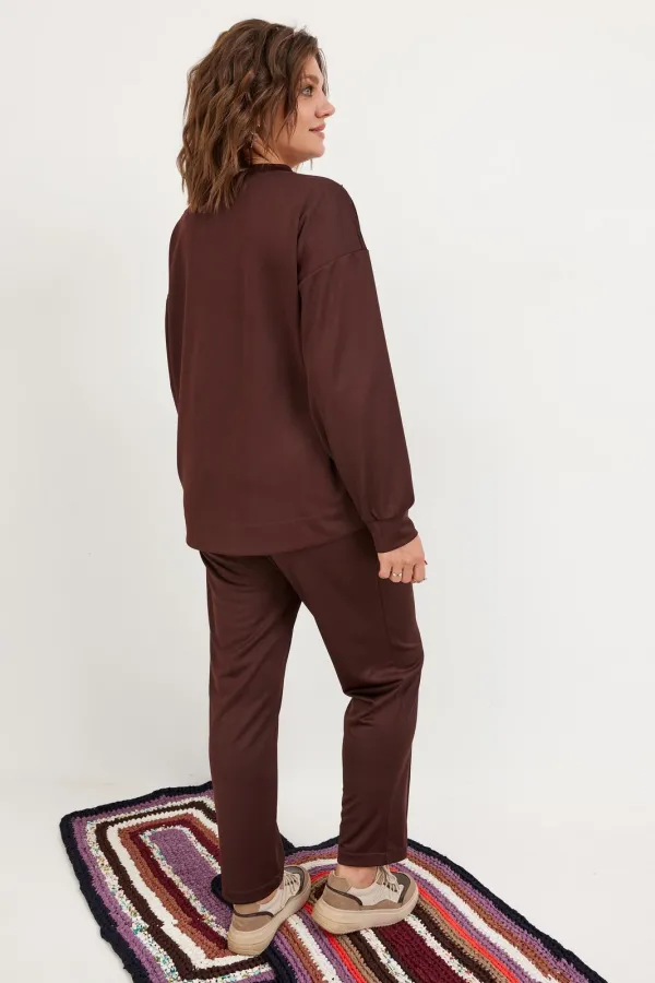 Потрясающий современный комплект из мягкого, эластичного трикотажа позволит обратить на себя внимание и создаст отличное настроение! Свободный силуэт свитшота подарит чувство комфорта. Декоративная отделка бисерной строчкой правильно расставляет акценты, создавая нужные линии, что позволяет визуально подчеркнуть достоинства фигуры. Брючки с застроченной стрелкой идеально садятся по фигуре, невероятно стройнят и удлиняют Ваши ножки!