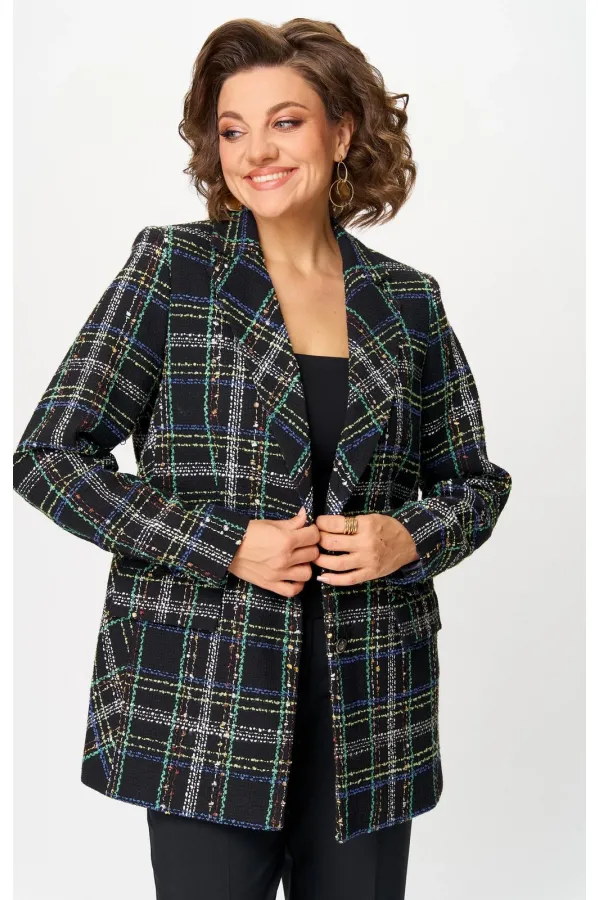 Комплект женский-двойка,из костюмной ткани, жакет удлиненный, свободного силуэта с центральной бортовой застежкой на пуговицы до линии перегиба лацкана. По переду имеется отрезной бочок и вертикальные вытачки. С прорезны... Читать далее...