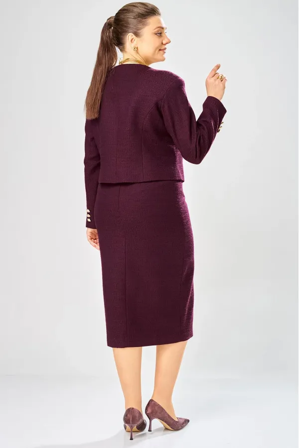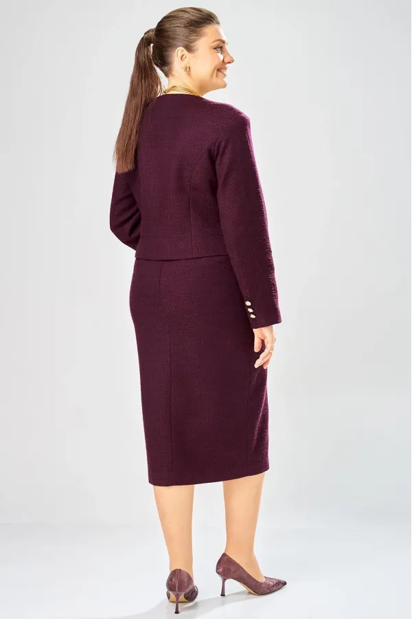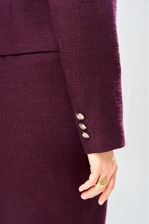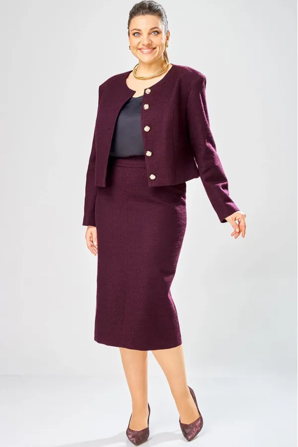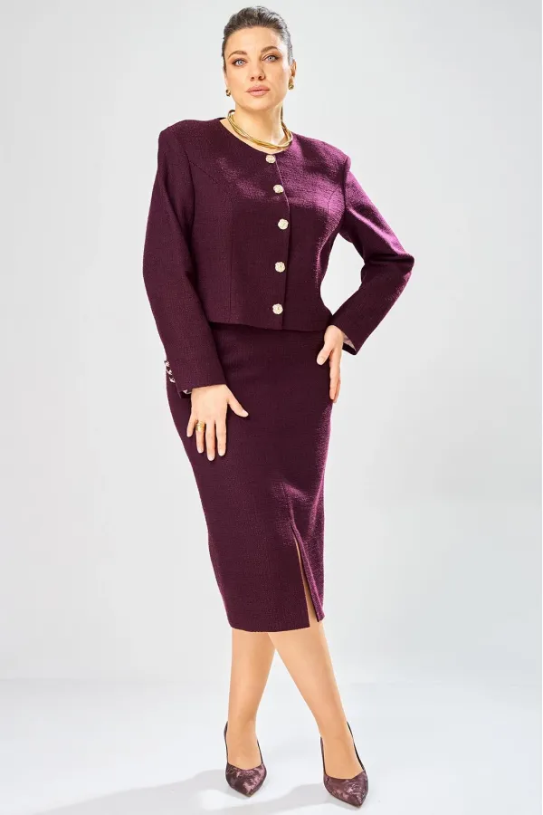 Элегантный женский костюм, состоит из юбки и жакета, выполнен из жаккардовой ткани с содержанием хлопка.