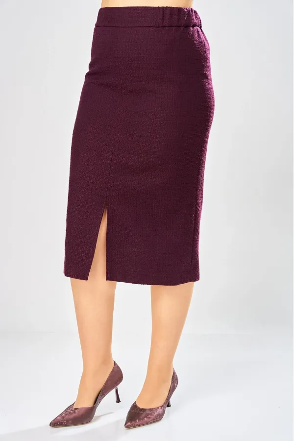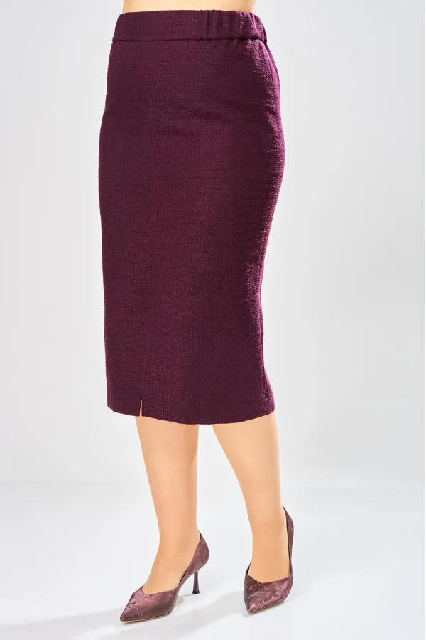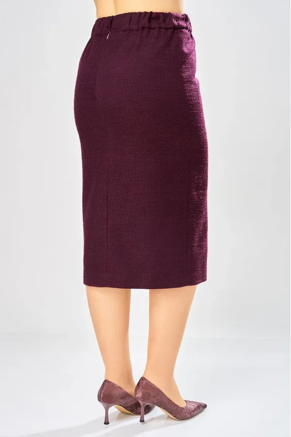 Юбка карандаш, актуальной длины до середины икры. По переду и спинке центральные швы, в переднем шве по низу разрез, по спинке застежка молния, верх юбки оформлен отрезным поясом. Юбка на подкладке.