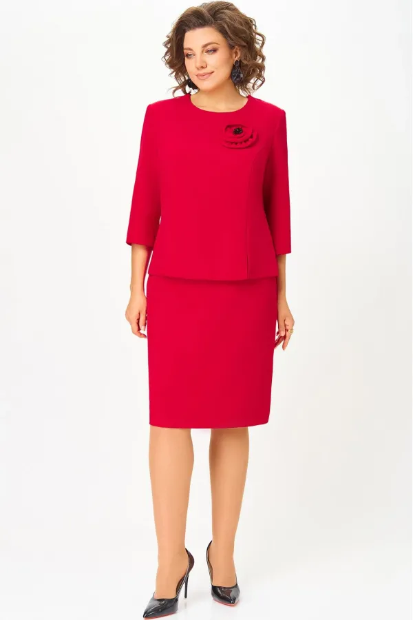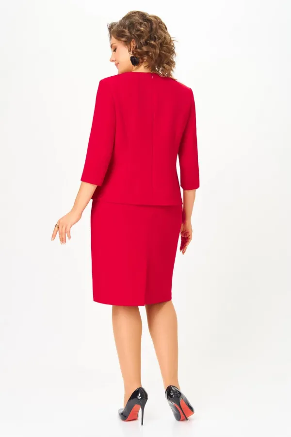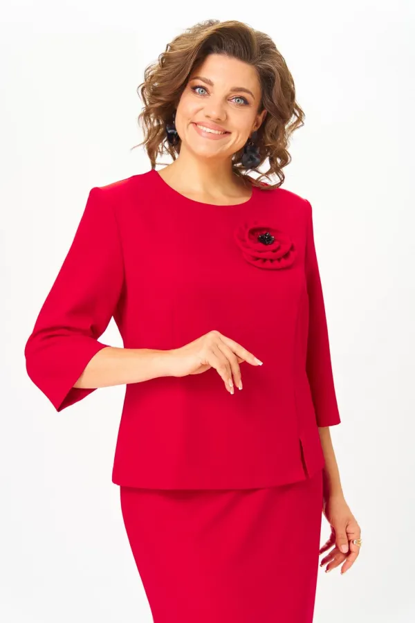 Костюм женский двух предметный, состоящий из блузки и юбки. Блузка прилегающего силуэта, с фигурными рельефами по переду и спинке. Спереди внизу в рельефах обработаны разрезы. По спинке застежка на «молнию» по среднему ш... Читать далее...