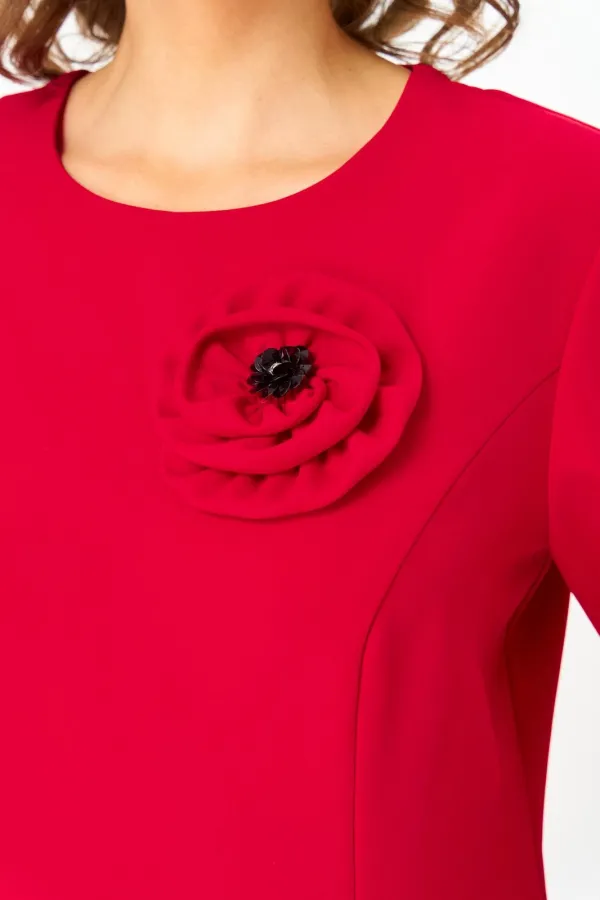 Костюм женский двух предметный, состоящий из блузки и юбки. Блузка прилегающего силуэта, с фигурными рельефами по переду и спинке. Спереди внизу в рельефах обработаны разрезы. По спинке застежка на «молнию» по среднему шву. Рукав в точной, одношовный, длиной ¾. Юбка прямого силуэта, зауженная к низу, длиной за колено. По переду- таллиевые выточки. По заднему полотнищу-таллиевые вытачки, средний шов с застежкой на «молнию» и шлицей внизу. Притачной пояс сзади с резинкой и застежкой на петлю и пуговицу. Декором модели служит украшение в виде цветка7055.2 костюм женский двух предметный, состоящий из блузки и юбки. Блузка прилегающего силуэта, с фигурными рельефами по переду и спинке. Спереди внизу в рельефах обработаны разрезы. По спинке застежка на «молнию» по среднему шву. Рукав в точной, одношовный, длиной ¾. Юбка прямого силуэта, зауженная к низу, длиной за колено. По переду- таллиевые выточки. По заднему полотнищу-таллиевые вытачки, средний шов с застежкой на «молнию» и шлицей внизу. Притачной пояс сзади с резинкой и застежкой на петлю и пуговицу. Декором модели служит украшение в виде цветка