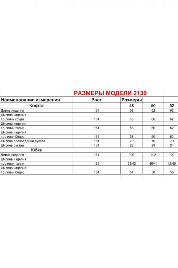 Длина кофты по спинке 62 см, длина рукава+ширина плеча 70 см. Длина юбки 102 см.