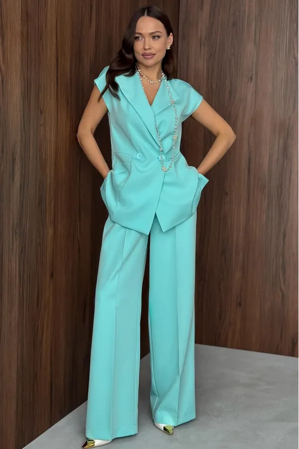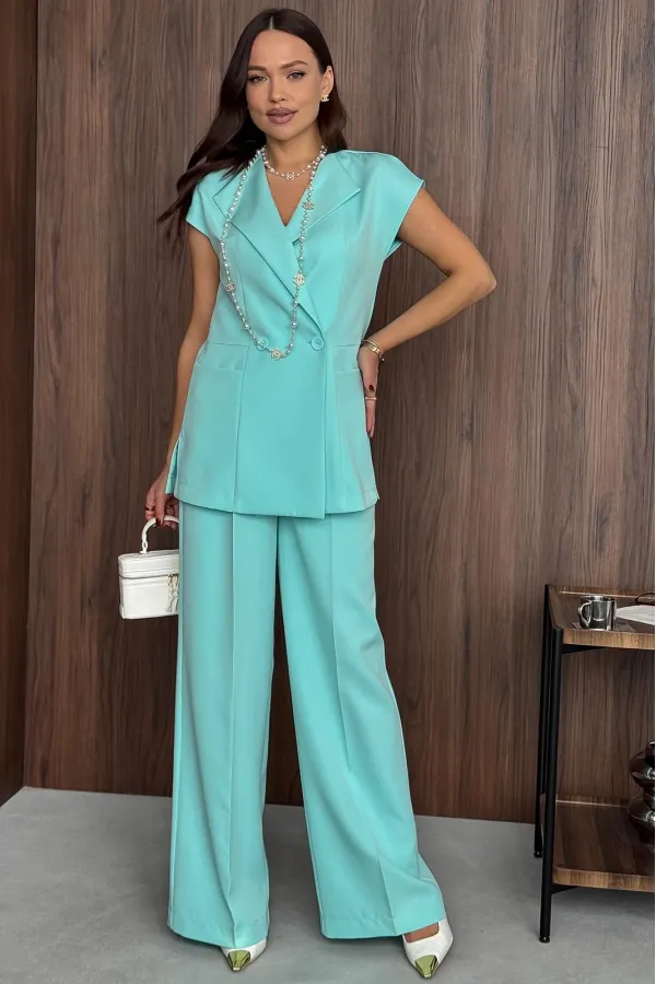 Костюм женский повседневный, состоящий из брюк и жилета.