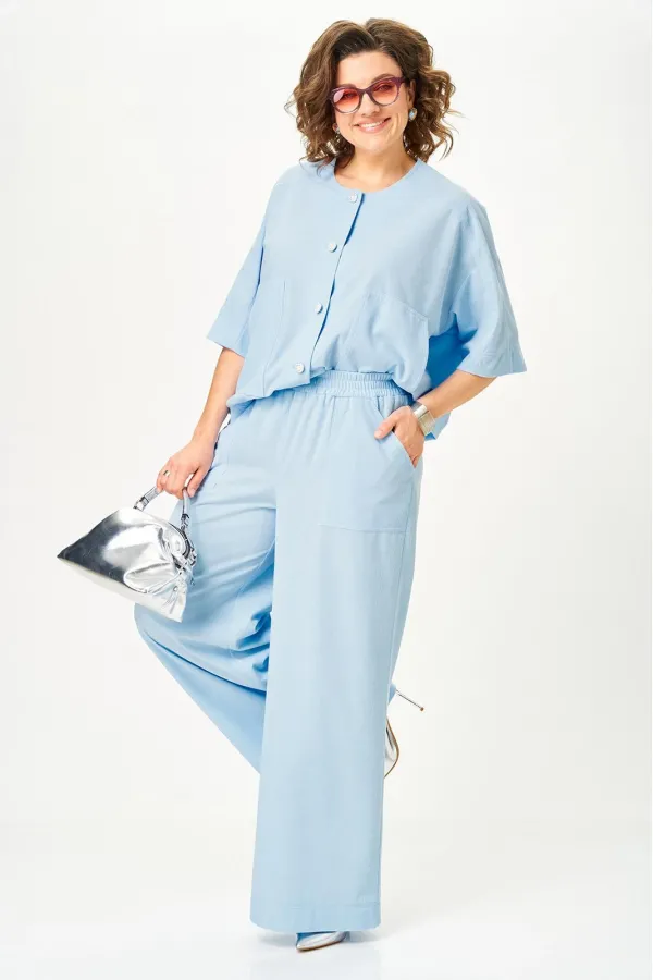 Летний брючный костюм из легкого вельвета , безупречный фасон в сочетание с нежным цветом сделает ваш образ идеально модным как в ежедневной носке так и для особого случая . Жакет свободного прямого , кроя с накладными к... Читать далее...