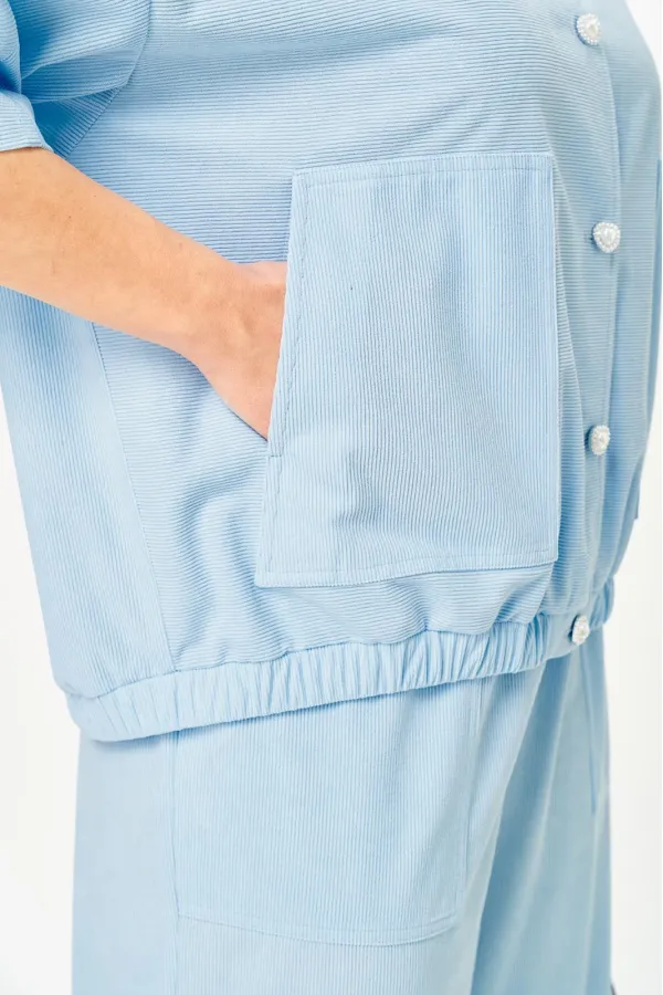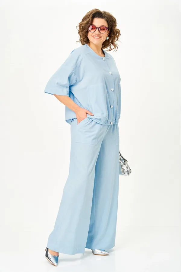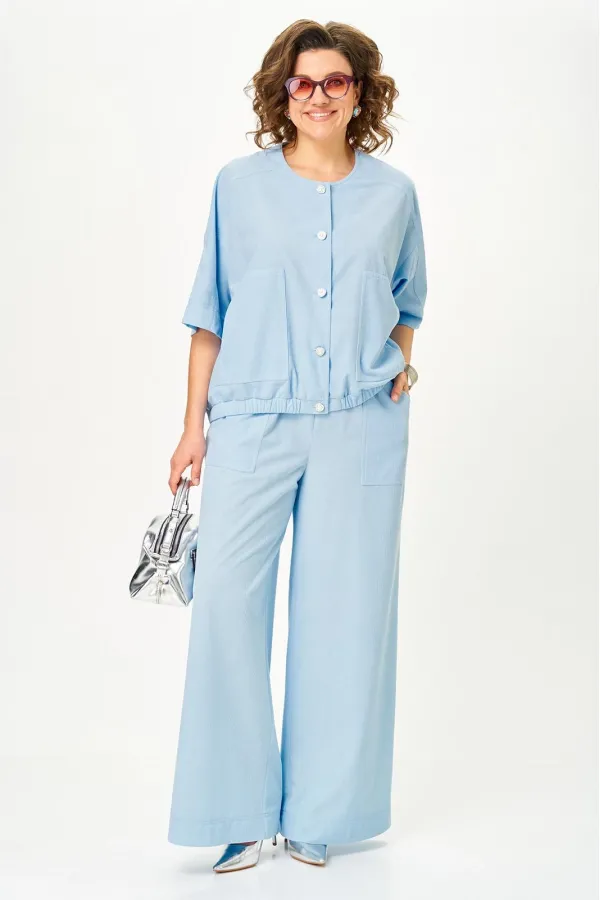 Летний брючный костюм из легкого вельвета , безупречный фасон в сочетание с нежным цветом сделает ваш образ идеально модным как в ежедневной носке так и для особого случая . Жакет свободного прямого , кроя с накладными карманами , на застежке петли пуговицы, по низу эластичная лента , рукав укороченный , резной с отстрочками . Брюки прямого силуэта, с накладными карманами, средней посадки , без застежки на поясе с резинкой.Возможна замена фурнитуры.