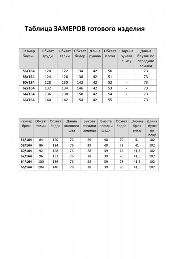 | Ткань | Блузка – полиэстер 100% (шифон). Брюки – полиэстер 50% вискоза 50% |