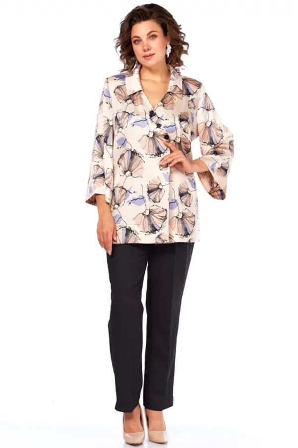 Стильный образ подчеркнет привлекательность, комплект вкотором с легкостью обратите на себя внимание. Блузасвободного силуэта, выполнена из принтованной ткани скрасивым цветовым акцентом. Воротник отложной. Эстетичноподч... Читать далее...