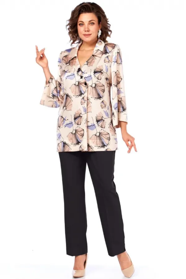 Код Товара: 2394/1 бежевый принт, брюки черные. Элль-стиль
