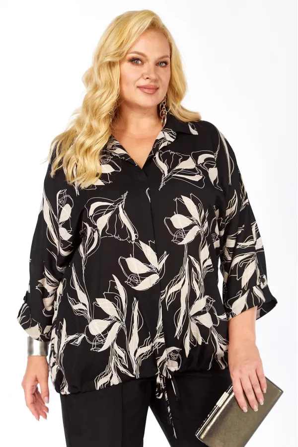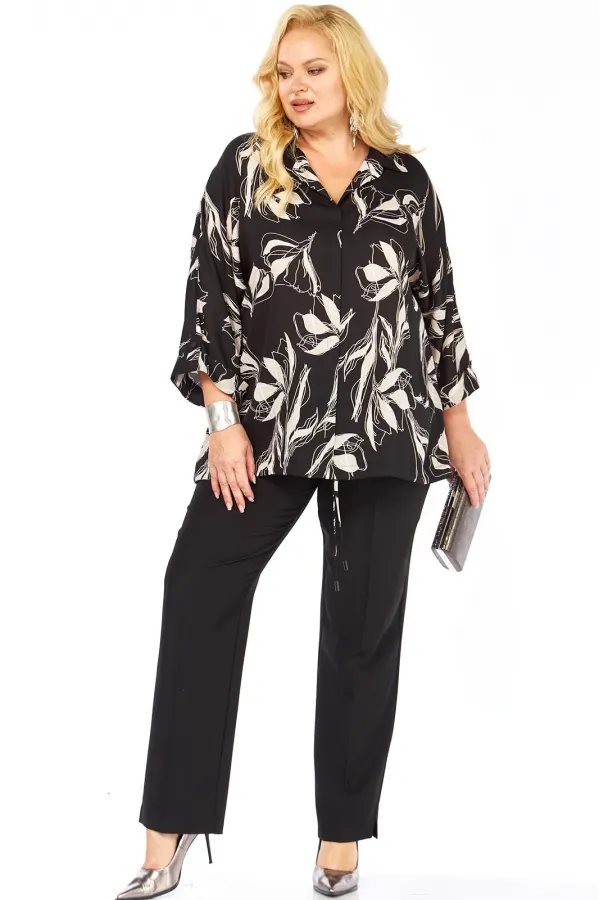 Код Товара: 2416 черный+принт цветы, Элль-стиль