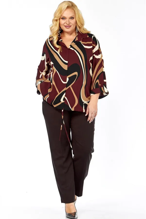 Стильный образ подчеркнет привлекательность, комплект двухпредметный, состоит из блузы и брюк. Блузка прямого силуэта изпринтованной ткани с красивым цветовым акцентом. Вырез горловиныV-образной формы, воротник классичес... Читать далее...