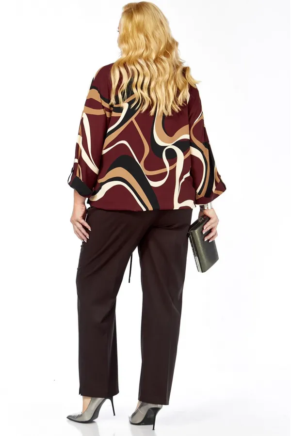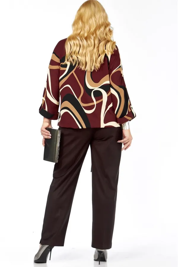 Код Товара: 2416 корица+принт, брюки шоколад Элль-стиль