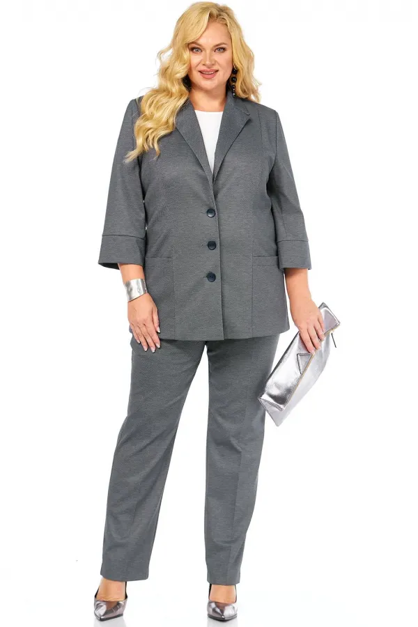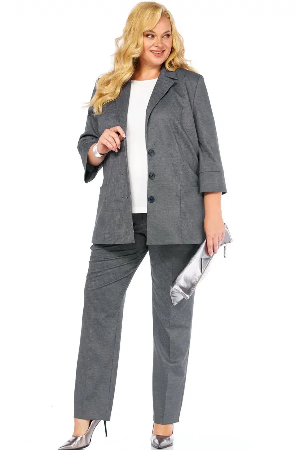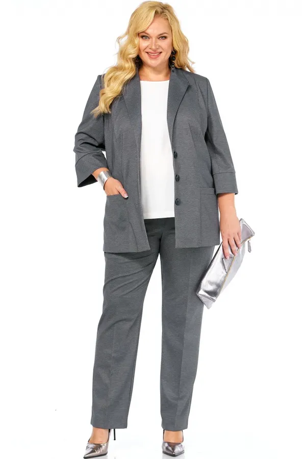 Комплект тройка, состоит из жакета, блузки и брюк, выполнен