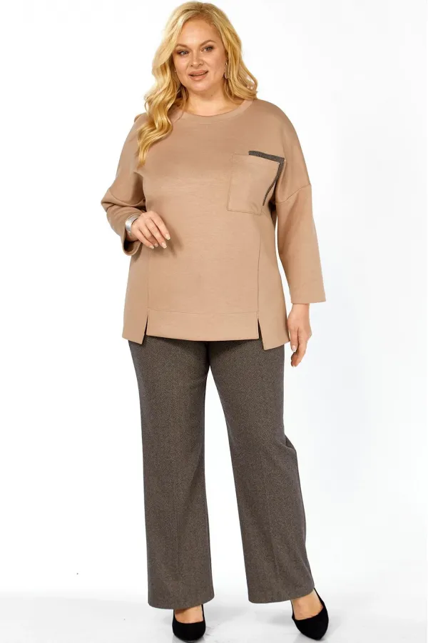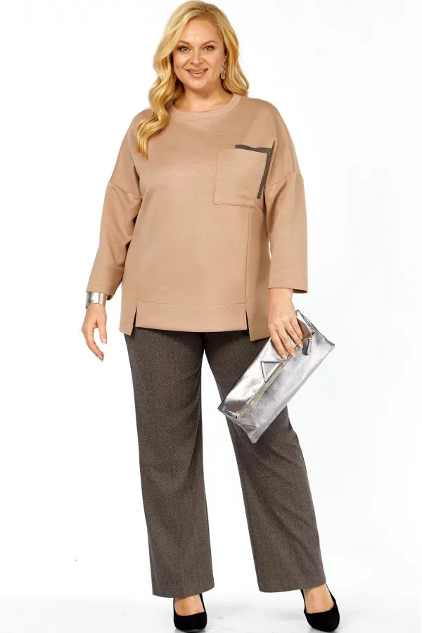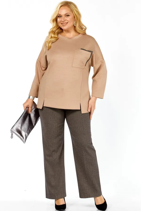 Комплект 2-ух предметный, состоит из блузки и брюк. Очень удобная,уютная блуза из трикотажного полотна. Изделие полуприлегающегосилуэта. Горловина аккуратной округлой формы. Рукав втачной,линия плеча спущена полной длины... Читать далее...
