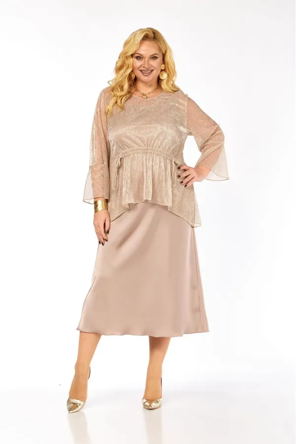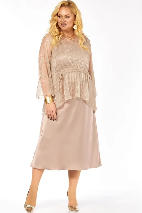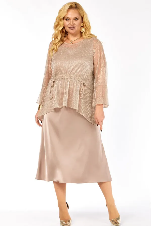 Уникальное платье, сочетает в себе изысканный дизайн. Модельплатья подчеркнет вашу красоту и универсальность. Модель состоитиз двух изделий платье и блуза. Платье полуприлегающего силуэта,длина миди Блуза выполнена из во... Читать далее...