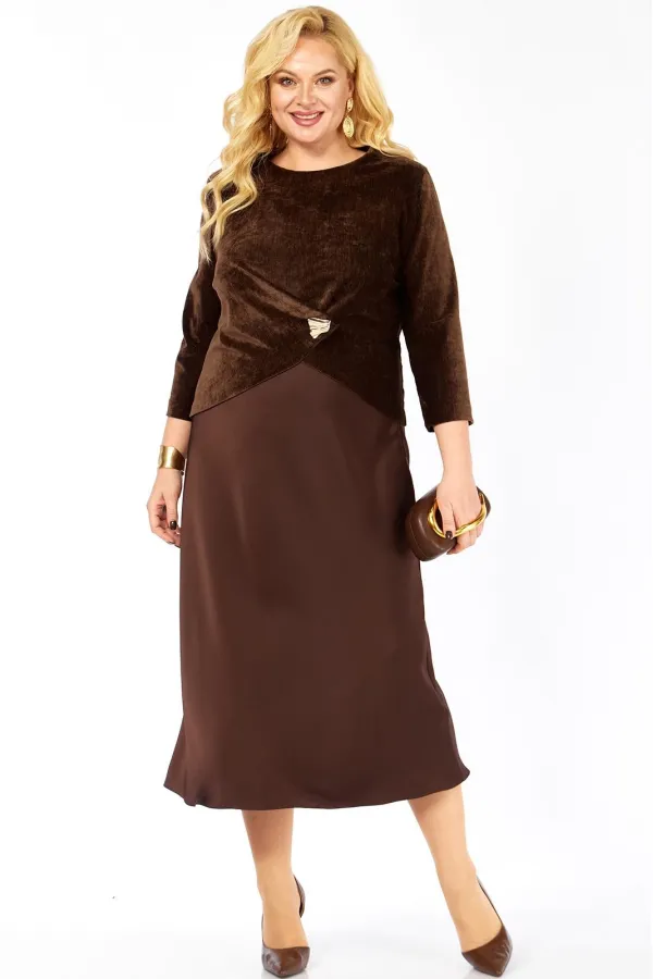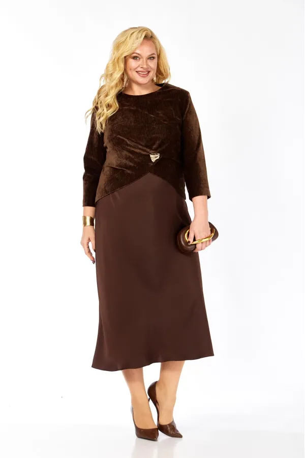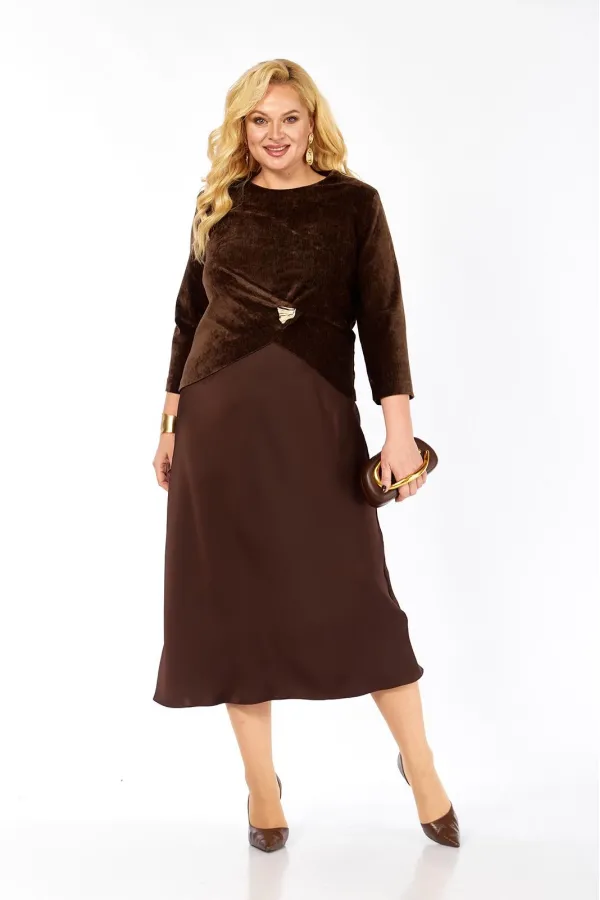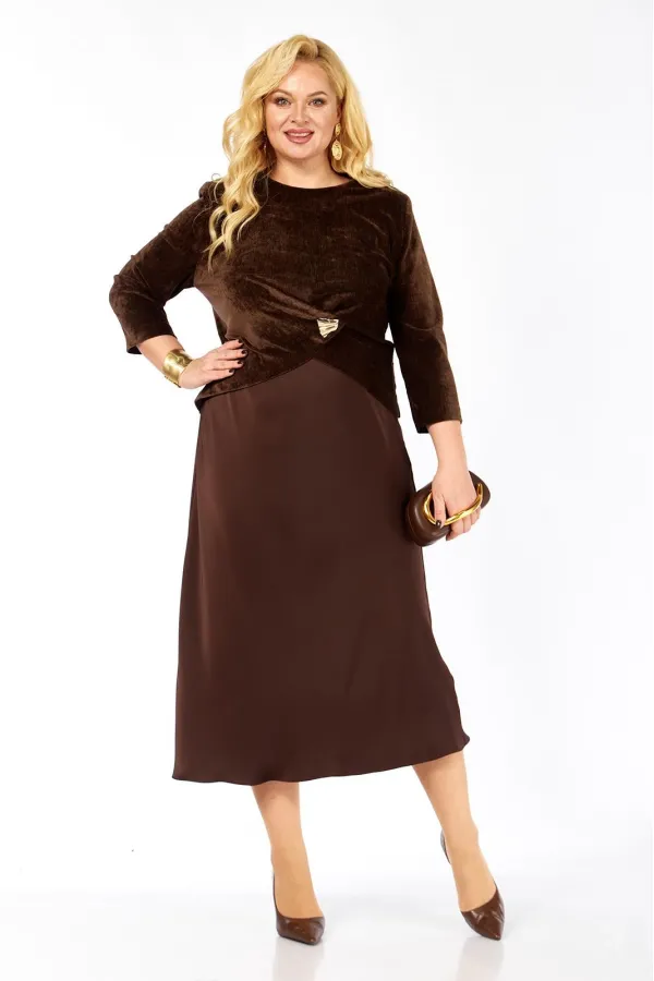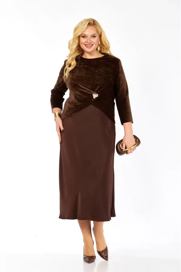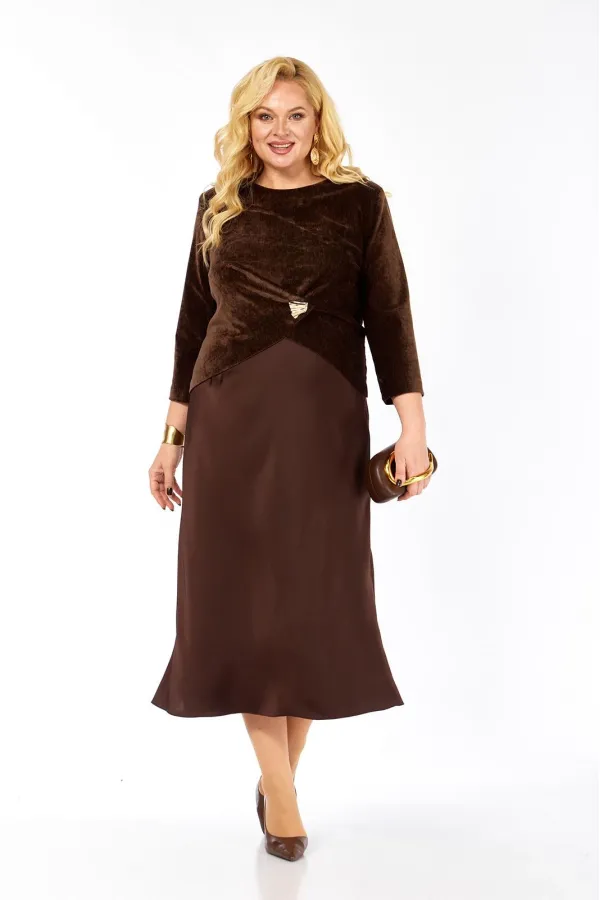 из двух изделий платье и блуза. Платье полуприлегающего силуэта,