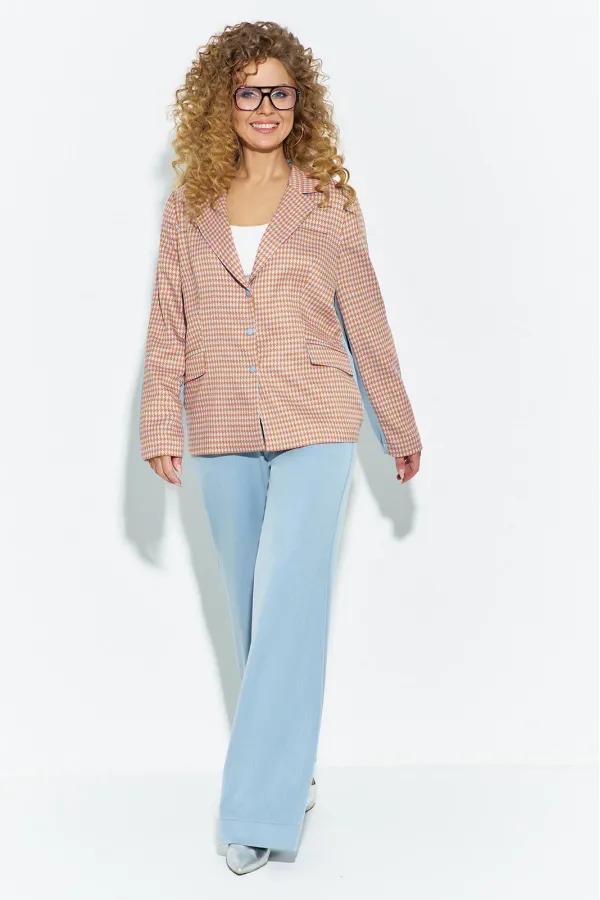 Костюм женский, состоит из жакета и брюк, выполнен в сочетании костюмных тканей. Жакет свободного кроя, не приталенный. Полочка жакета выполнена в стиле классического жакета с прорезными карманами - рамками и английским ... Читать далее...
