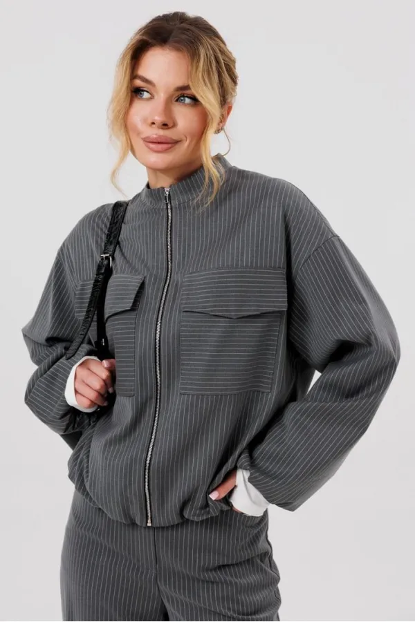 Жакет свободного силуэта, на застежке-молнии, по низу на резинке.По полочке жакета-