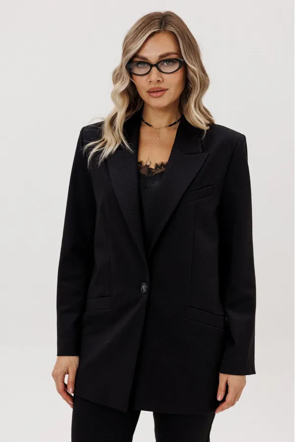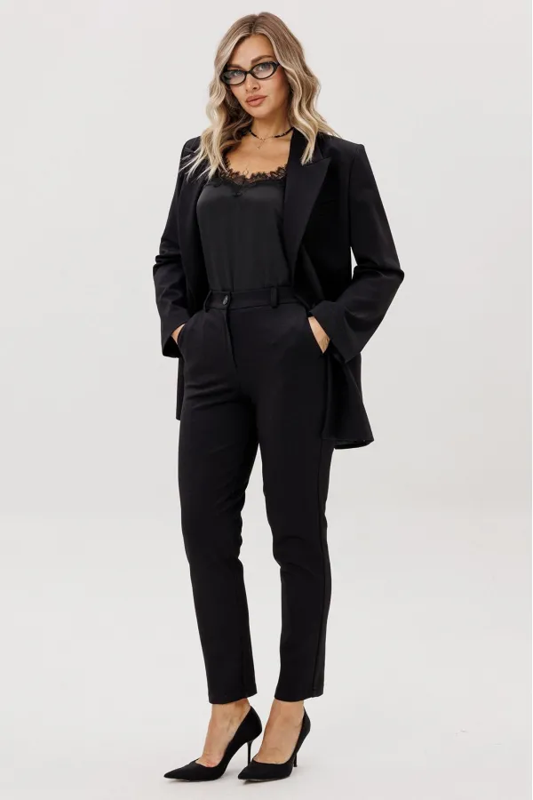Жакет оверсайз, на подкладке.Застегивается на одну пуговицу. Рукав втачной. Брюки средней посадки, с