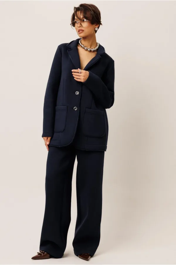 Костюм в стиле smart casual создаст в меру строгий и одновременно расслабленный образ как для работы, так и торжественного мероприятия. И жакет, и брюки идеально впишуться в Ваш гардероб как вместе так и порознь.