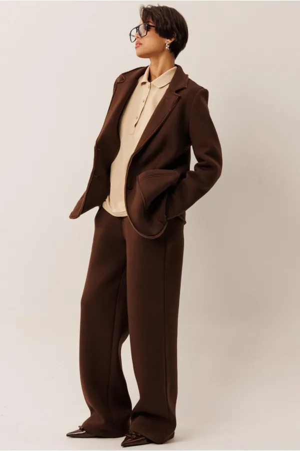 Костюм в стиле smart casual создаст в меру строгий и одновременно расслабленный образ как для работы, так и торжественного мероприятия. И жакет, и брюки идеально впишуться в Ваш гардероб как вместе так и порознь.