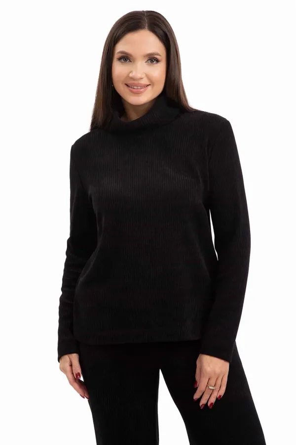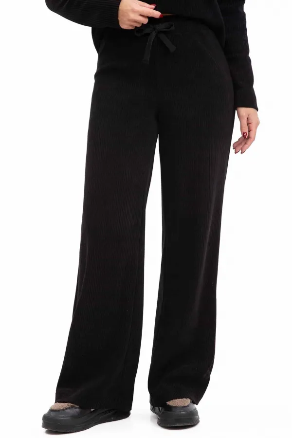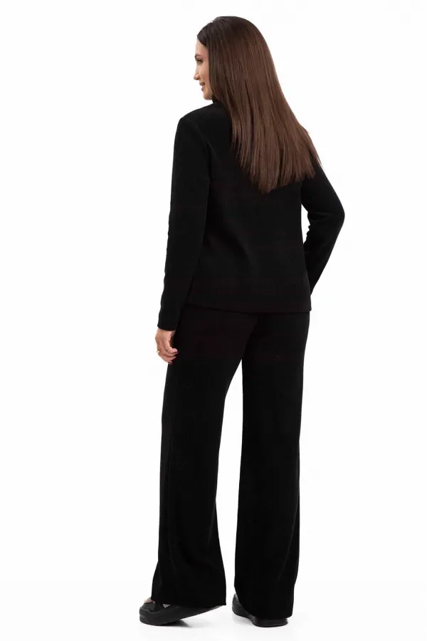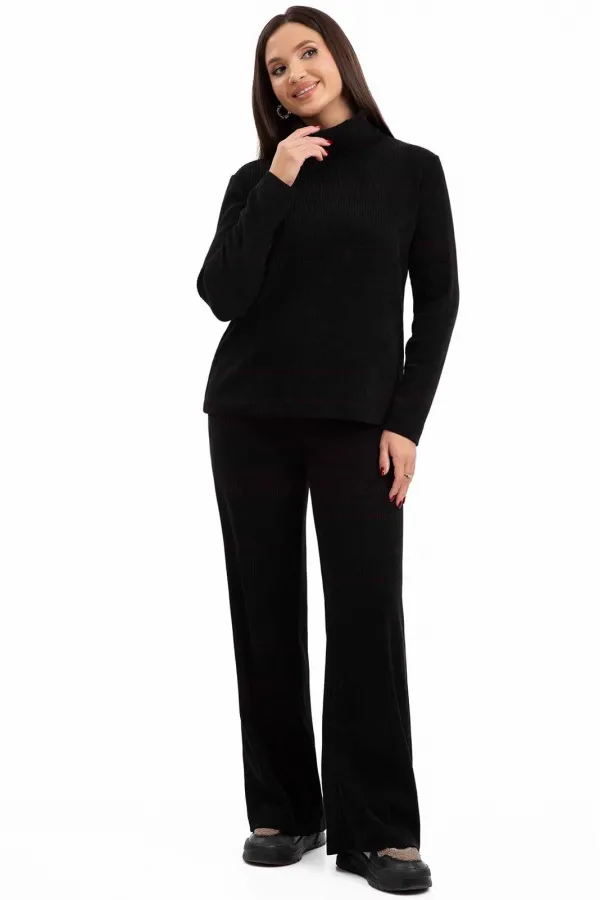 Комплектация: джемпер, брюки. Джемпер с втачным воротником-стойкой и втачными рукавами. Брюки широкие с отрезным поясом, в пояс вставлена резинка.На переде пояса выметаны петли и вставлен шнур.