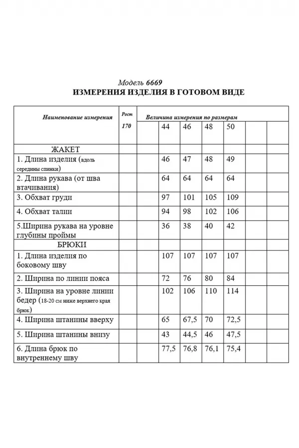 | Ткань | Жакет: полиэстер 65% хлопок 31%спандекс 4%. Брюки: полиэстер 63% вискоза 32% спандекс 5%. |