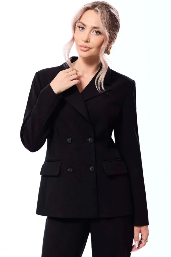 Комплектация: жакет, брюки. жакет с центральной двубортной застежкой на петли и пуговицы, отложным воротником и лацканами пиджачного типа. По переду с рельефами, выходящими из проймы, талиевыми вытачками, прорезными карм... Читать далее...