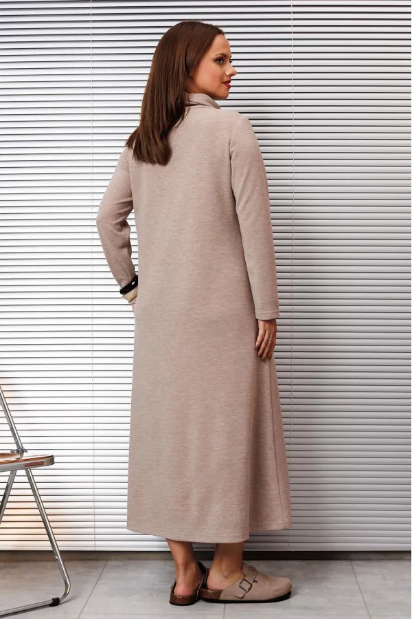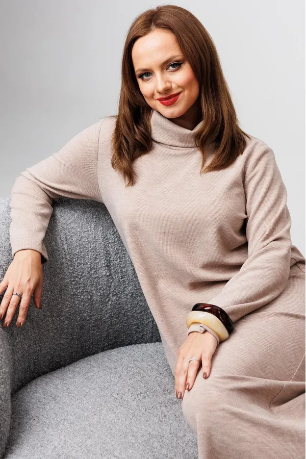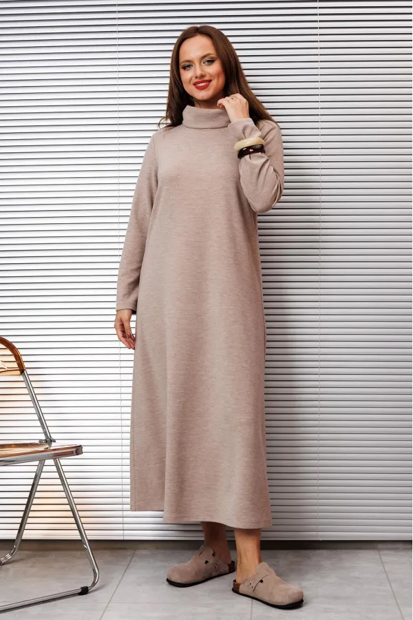 Платье свободного силуэта, вырез горловины округлый с воротником – хомут. Рукав втачной, длинный. Изделие без застежки.