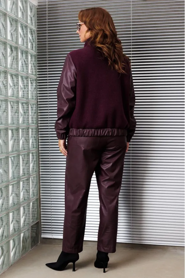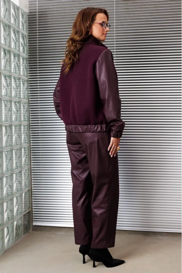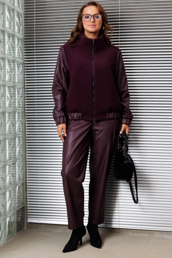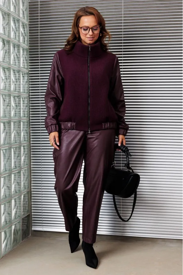Комплект двойка состоящий из жакета и брюк.Жакет-бомбер свободного силуэта, выполнен в сочетании из двух тканей, горловина - стойка. Рукав втачной, на резинке по низу. По переду карманы с листочкой, по низу жакет на рези... Читать далее...