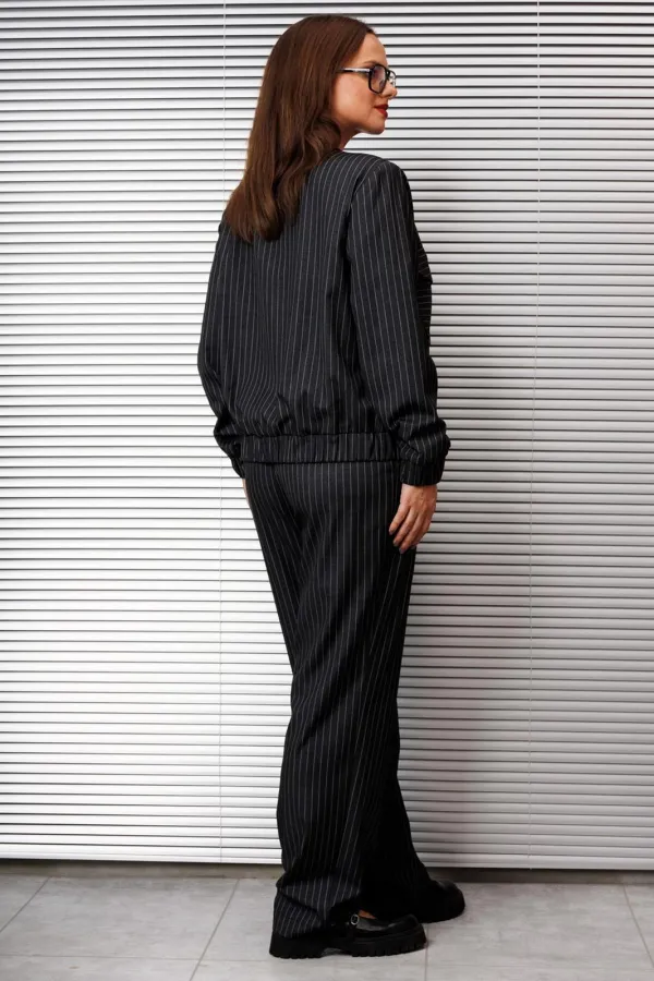 Комплект женский состоит из бомбера и брюк.Бомбер свободного силуэта, вырез горловины округлый. Рукав спущенный, длинный, внизу на на манжете. Нагрудные , накладные карманы с клапанами. Застежка на тесьму-молнию на всю д... Читать далее...