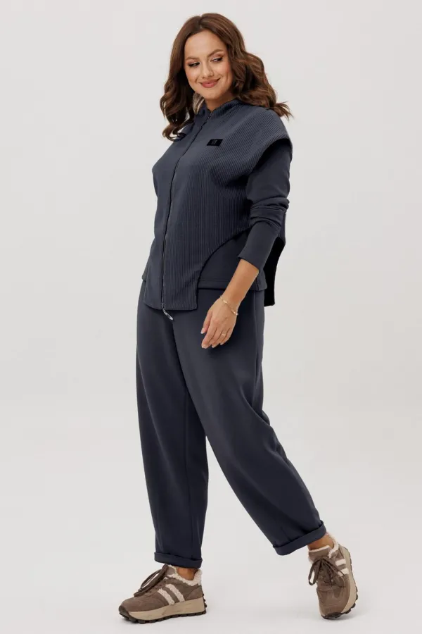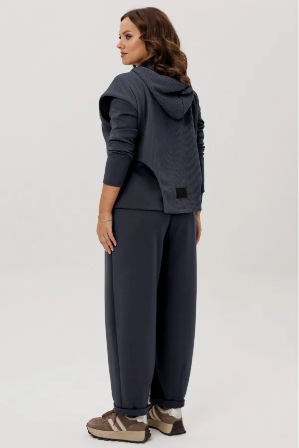 Комплект тройка состоящий из жилета, джемпера и брюк.Жилет свободного силуэта с ассиметричным кроем по низу. Изделие без рукавов, с капюшоном. Застежка на тесьму-молнию по переду. Джемпер свободного силуэта, вырез горлов... Читать далее...