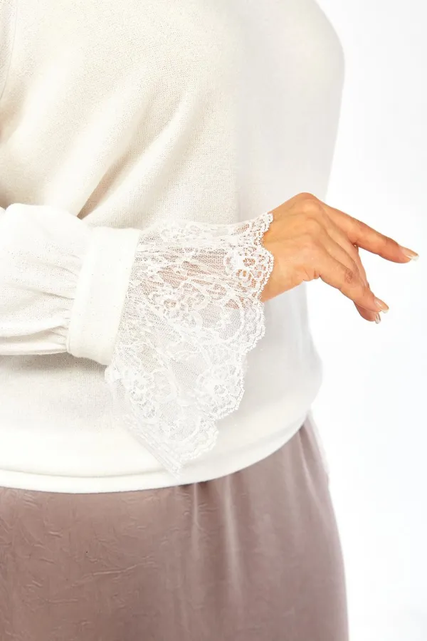 Комплект женский нарядный, состоит из джемпера и юбки. Джемпер выполнен из трикотажного полотна с икринкой. Перед и спинка цельнокроеные. Горловина круглой формы. Рукава втачные, по низу декоративные элементы с кружевом.... Читать далее...